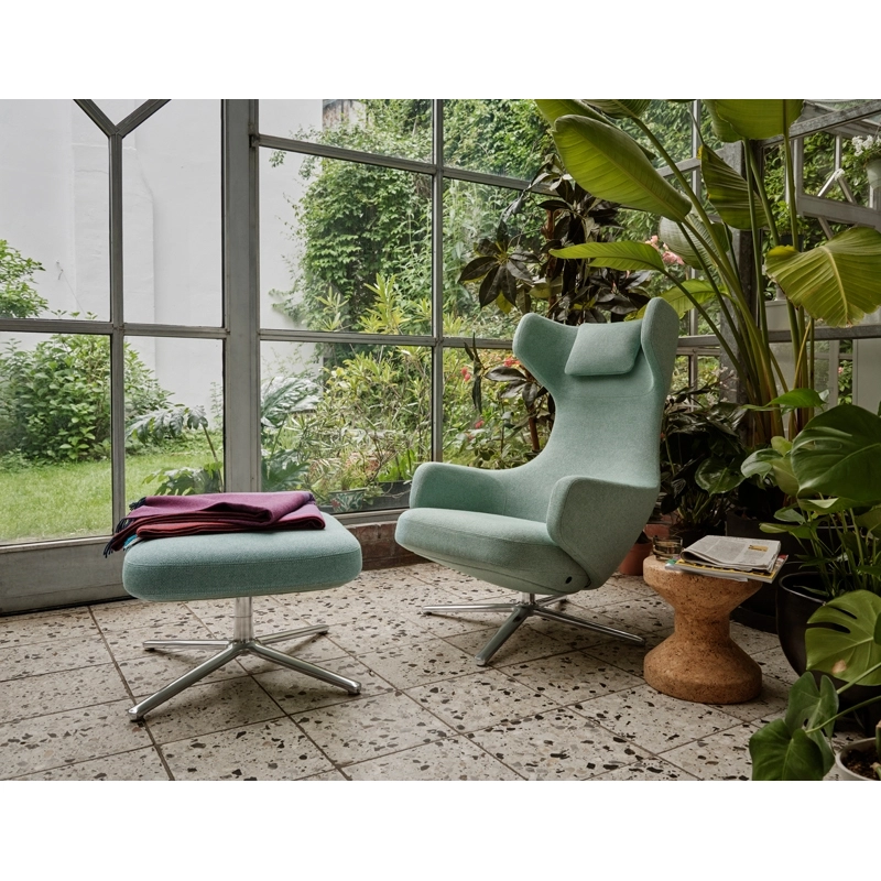 Created by Antonio Citterio, the Grand Repos armchair combines the expertise of office chair technology with the soft comfort of a lounge chair. The large swivel armchair's upholstered backrest and seat satisfy the need for movement and cater to a variety of sitting positions. This lounge chair adapts to all body positions thanks to its biomechanical construction. The adjustable angles of the seat and backrest adapt to the user's movement patterns and weight, and can be locked in any position. Ergonomics, movement and relaxation fuse into a piece that relaxes both body and mind. Like a thoughtful host and friend, the Grand Repos armchair, accompanied by the Ottoman, fulfils every dream of comfort. Published by Vitra, it is available in Cosy fabric or Natural leather. The covers are fully removable.