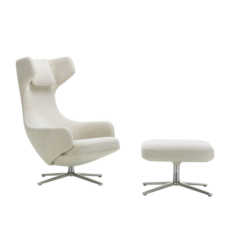 Easy chair GRAND REPOS & OTTOMAN fabric Nubia cream/pearl VITRA