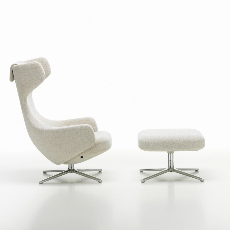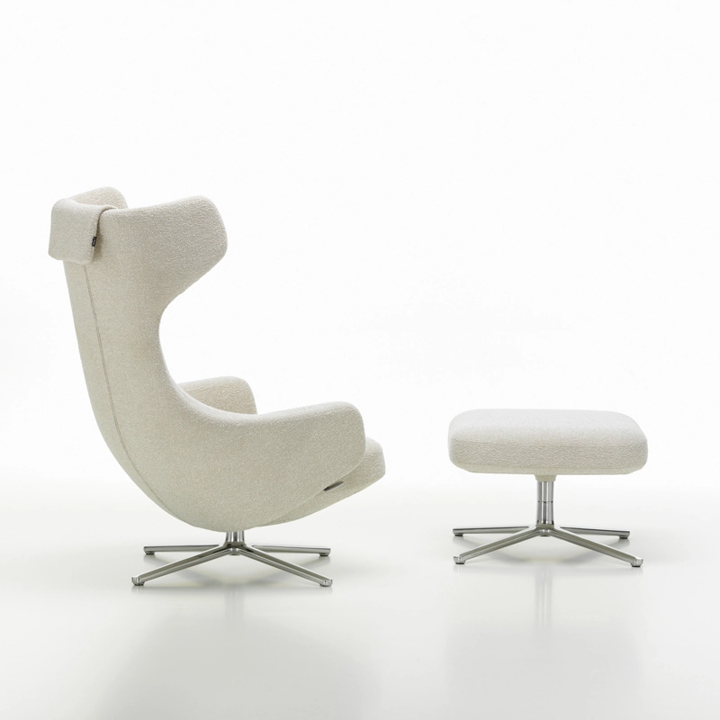 Created by Antonio Citterio, the Grand Repos armchair combines the expertise of office chair technology with the soft comfort of a lounge chair. The large swivel armchair's upholstered backrest and seat satisfy the need for movement and cater to a variety of sitting positions. This lounge chair adapts to all body positions thanks to its biomechanical construction. The adjustable angles of the seat and backrest adapt to the user's movement patterns and weight, and can be locked in any position. Ergonomics, movement and relaxation fuse into a piece that relaxes both body and mind. Like a thoughtful host and friend, the Grand Repos armchair, accompanied by the Ottoman, fulfils every dream of comfort. Published by Vitra, it is available in Cosy fabric or Natural leather. The covers are fully removable.