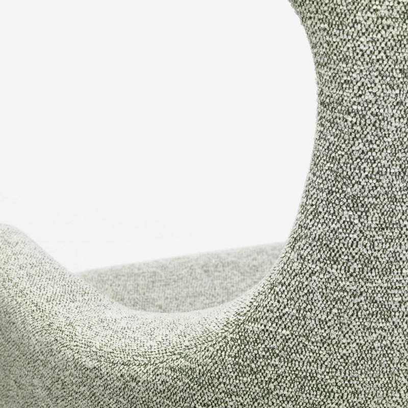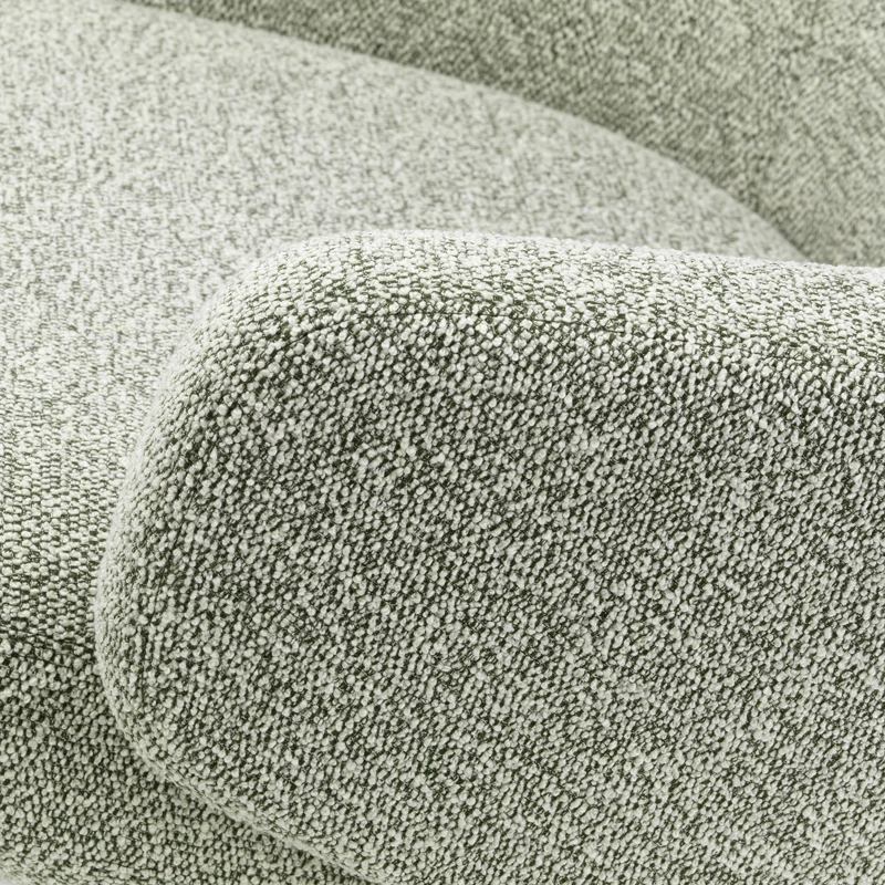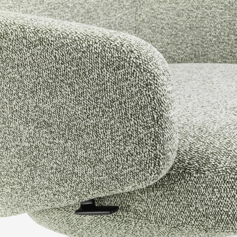 revêtement déhoussable tissu bouclé nubia, rembourrage mousse polyuréthane moulée avec cadre en matière plastique sanglé, appui-tête plumes, pieds aluminium injecté finition époxy noir