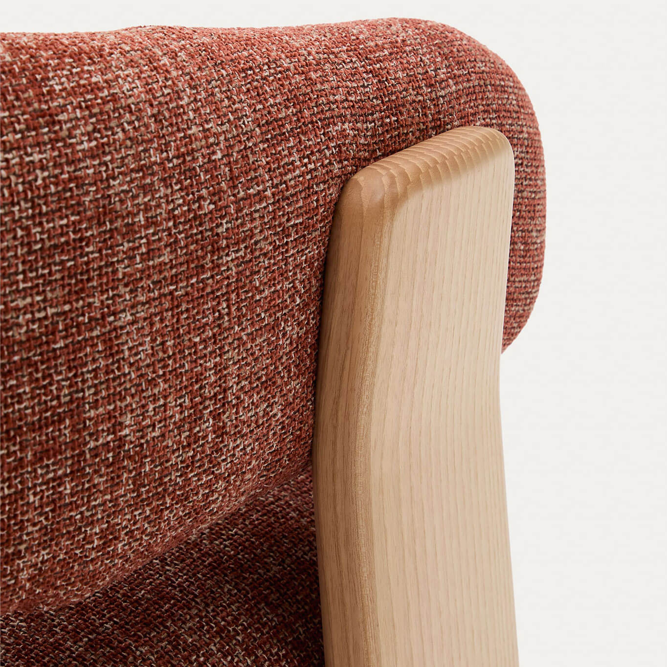 Granite armchair has been carefully crafted: balanced proportions, meticulous finishes, and a harmonious blend of natural materials and textured fabric. This armchair is part of a collection that pays tribute to craftsmanship and vintage design, reimagined with a modern twist. Whether placed in a living room, bedroom, or reading corner, the