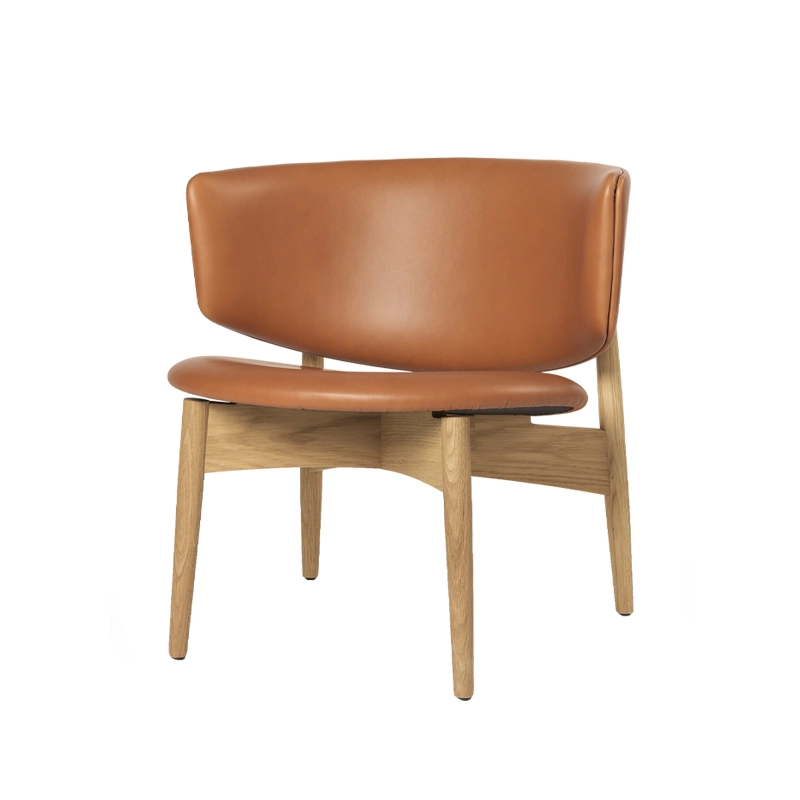 Created by Danish studio Herman for Ferm Living, Herman is a collection of seats that are as elegant as they are comfortable, with a light silhouette. The Herman Lounge Wood Armchair is made from wood with an upholstered seat and back, covered in high-quality leather. It features a generous oval seat and a backrest with soft, enveloping curves for maximum comfort. Thanks to its reduced proportions and light silhouette, this armchair edited by Ferm Living finds its place without all types of interiors.