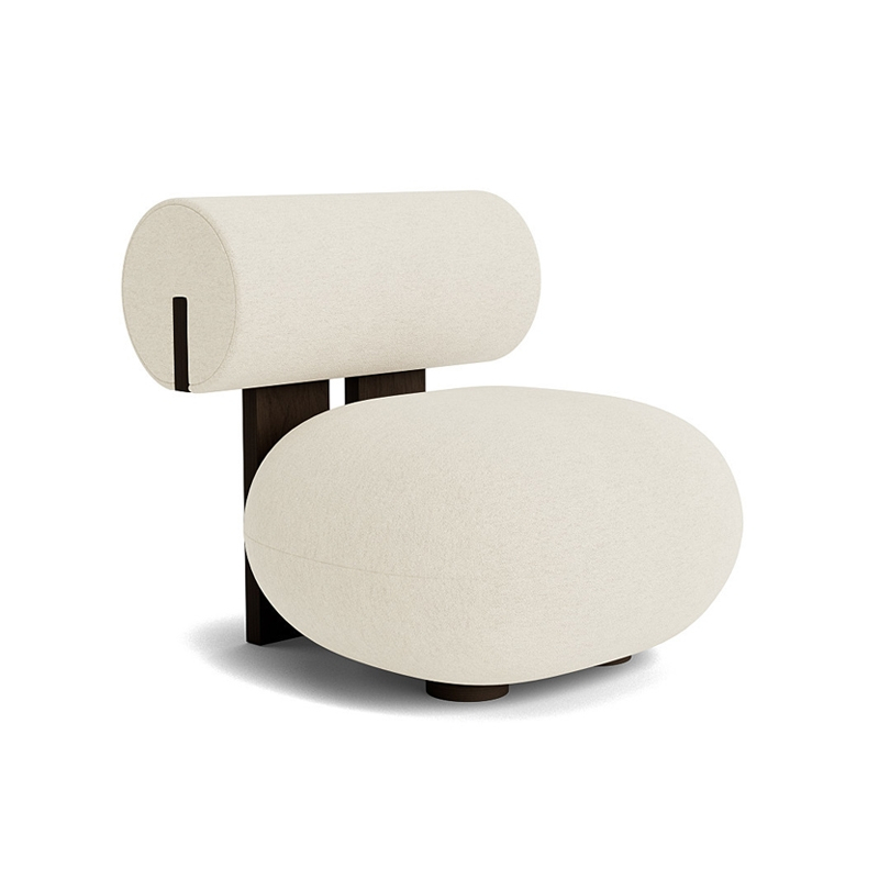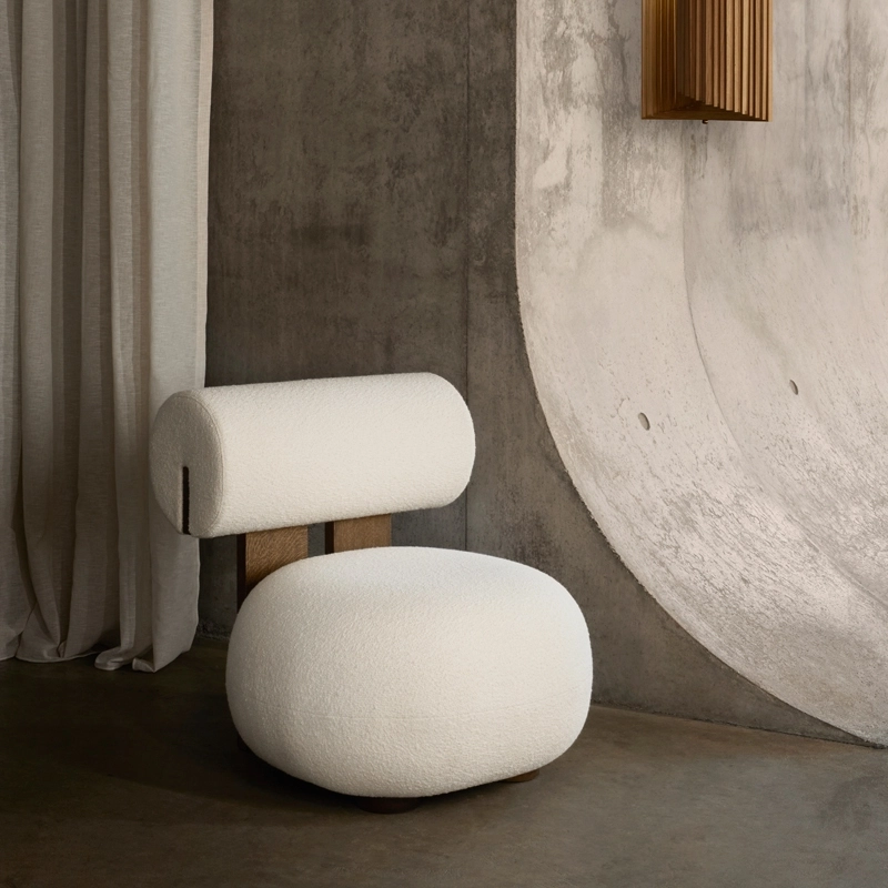 Characterised by soft, playful shapes, theHippo armchair by Norr11 makes an elegant statement in any interior. The Hippo armchair rests on two sturdy legs and a wooden profile linking the seat and backrest that contrasts with the soft shapes of the armchair. The characteristic profile of the wooden legs is available in a range of oak finishes, combined with a high-quality loopback fabric.