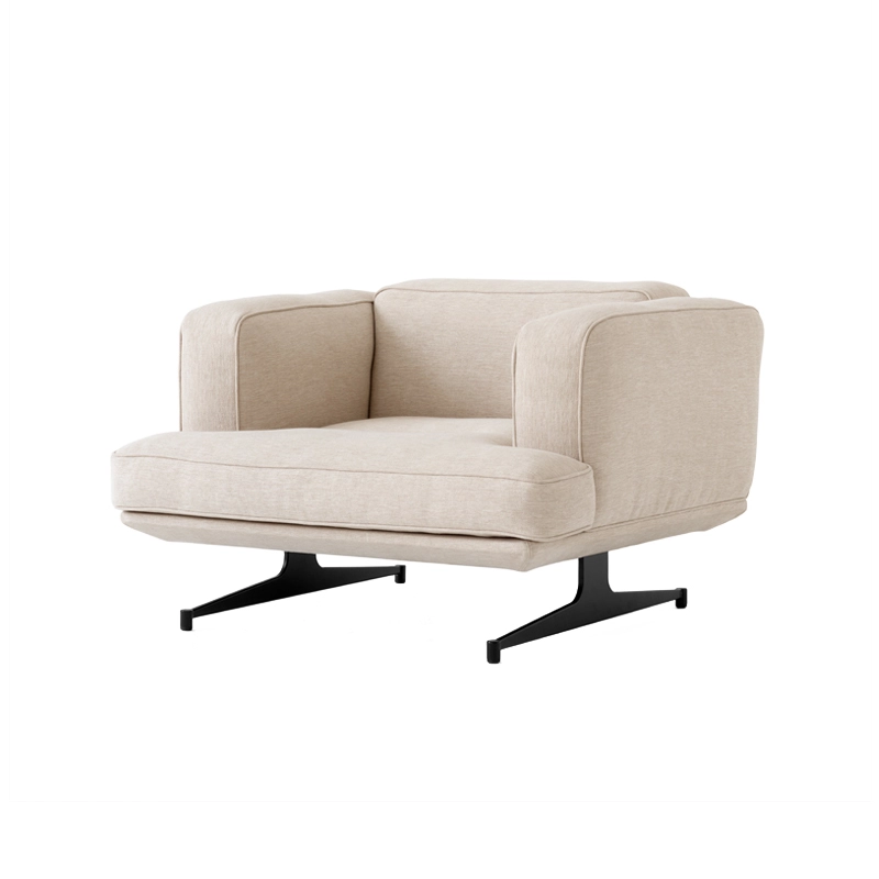 Torbjørn Anderssen and Espen Voll have created a chair that provides ultimate comfort within a defined architectural framework. With this vision in mind, they designed Inland, a deep armchair with high arms and a chrome or black base, which gives the impression that the sofa is floating.