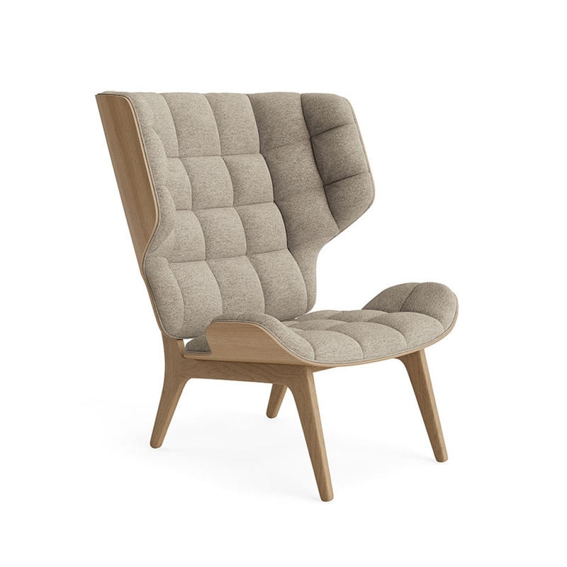 Mammoth from NORR11 is a modern and welcoming shepherdess. The high, wraparound backrest and soft upholstery offer superior comfort and a feeling of intimacy. The seat and backrest are formed from the same compression mould, giving the chair its clean, minimalist look. The Mammoth armchair is available in a range of high-quality wood and fabric combinations.