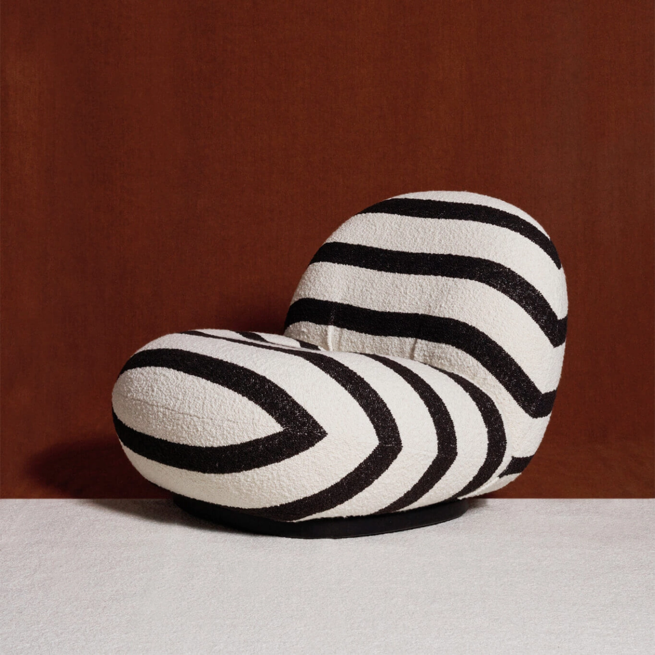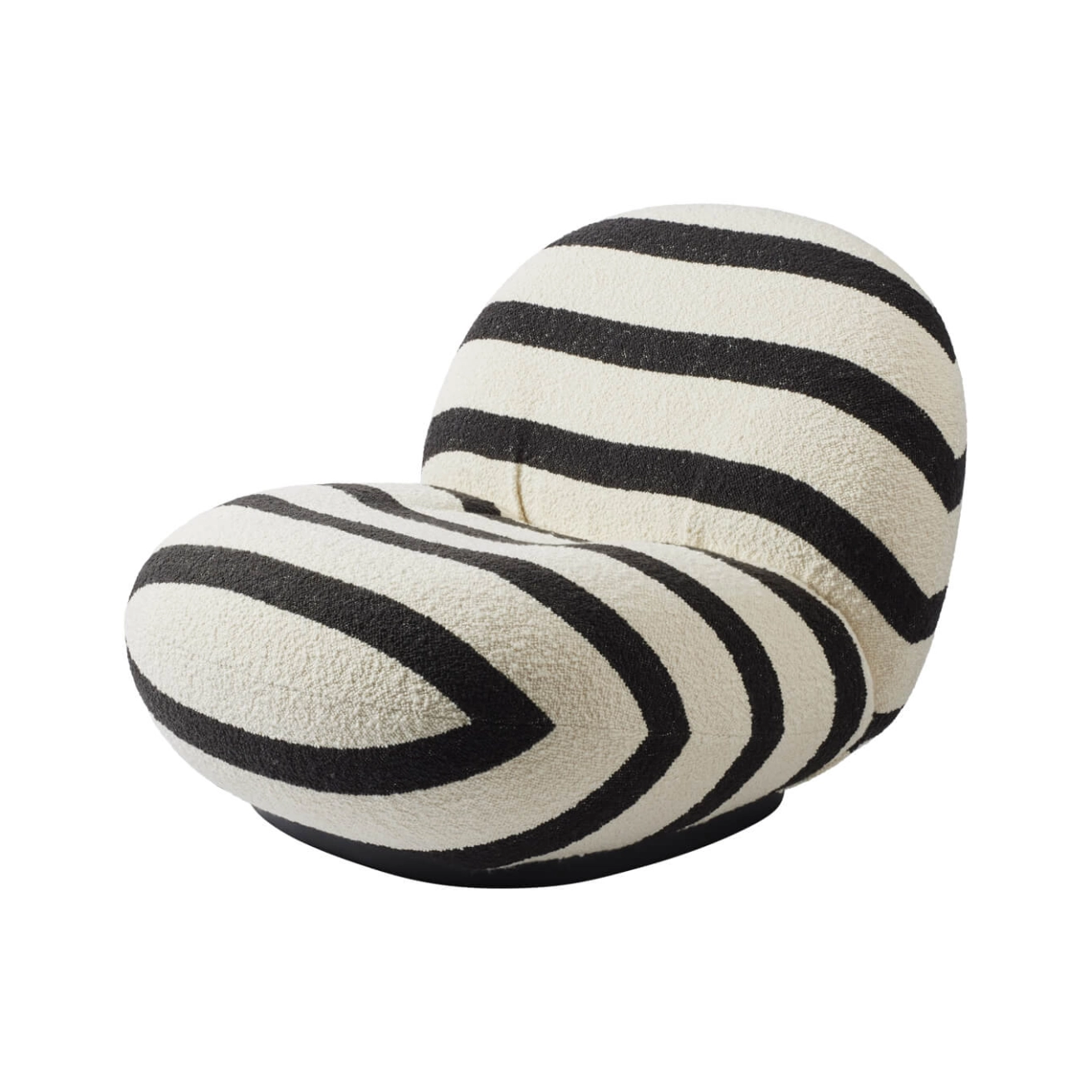 Gubi by finding the perfect proportions. The lines of the chair's stitching add to its elegance. The low, rounded foam seat is slightly raised at the base, where the stitching accentuates the silhouette. The base, which lacks the classic four-legged legs, gives this Pacha armchair a very contemporary look that will bring a breath of modernity to any living room or bedroom. Pierre Paulin was also one of the first to do away with the legs of armchairs, introducing a new way of life in which people sit closer to the ground.