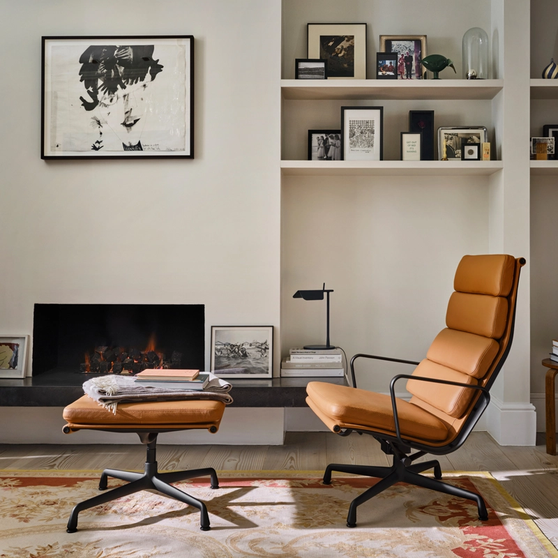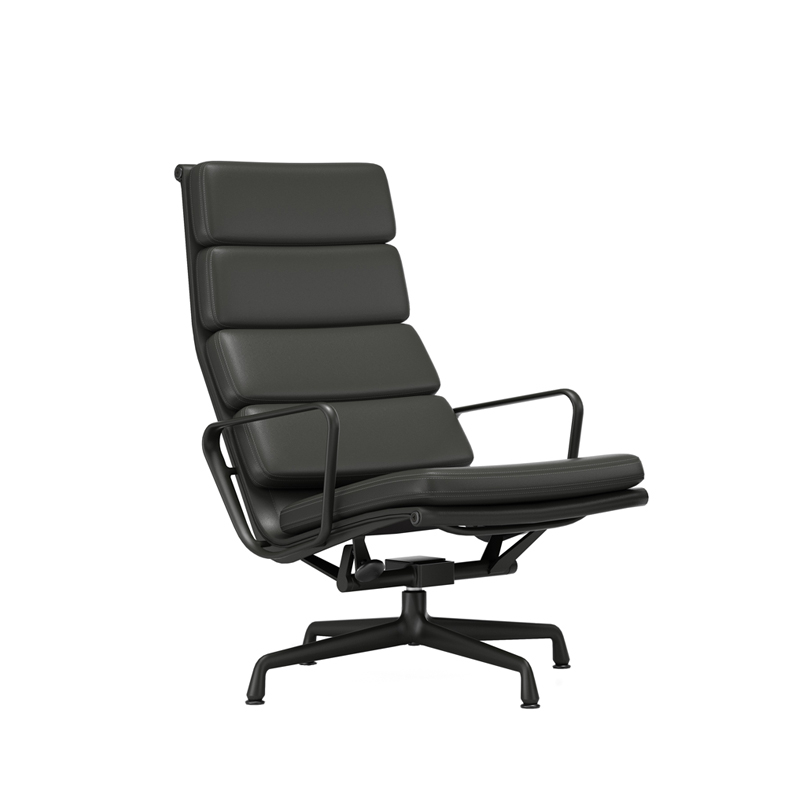 Designed in 1969 by Charles & Ray Eames, the Soft Pad armchairs are similar to the Aluminium Group chairs in terms of structure and shape, but are distinguished by their softer silhouette and more luxurious comfort. Featuring a high backrest and low seat, the Soft Pad Chair EA 222 Vitra offers extraordinary comfort, thanks in particular to its reclining mechanism that adapts to the user's weight. The matching EA 223 stool is the perfect complement to the armchair. The range of bases and choice of fabric or leather upholstery available in numerous colours make the Soft Pad Chair an ideal solution for any interior.