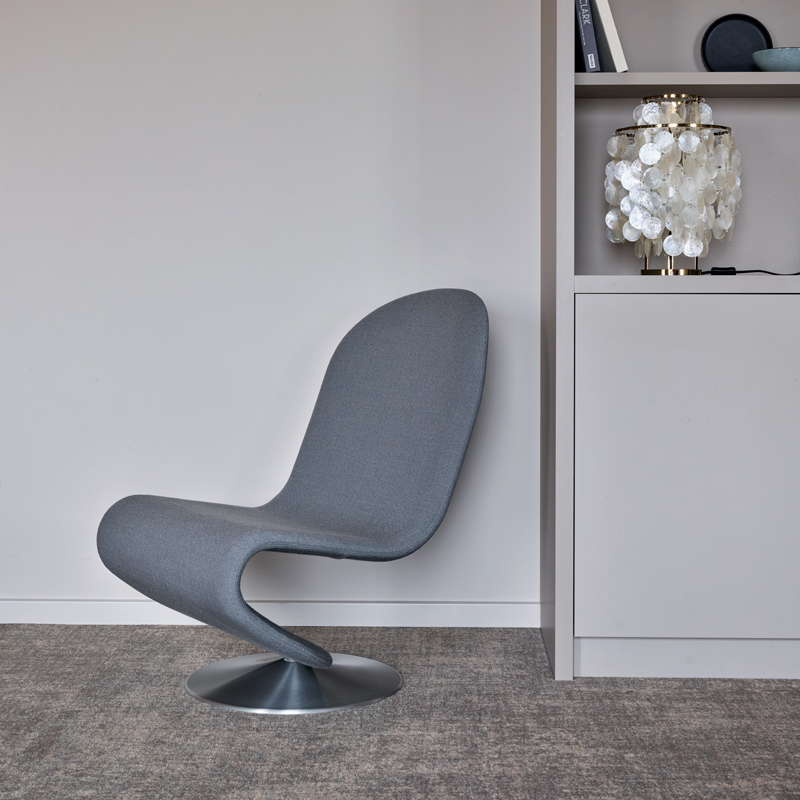 Created by Verner Panton in 1973, System 1-2-3 is a collection of seating with a strong character and a particular focus on comfort and conviviality. With its S-shaped silhouette on a swivel base, System 1-2-3 is a design piece that will stand out in any environment. Its round base in brushed aluminium ensures perfect stability. Its dynamic curves and illusion of floating make it an elegant and very modern armchair.