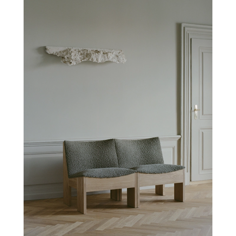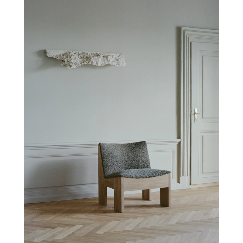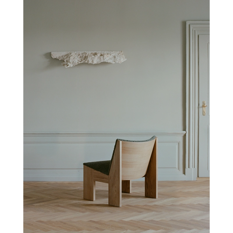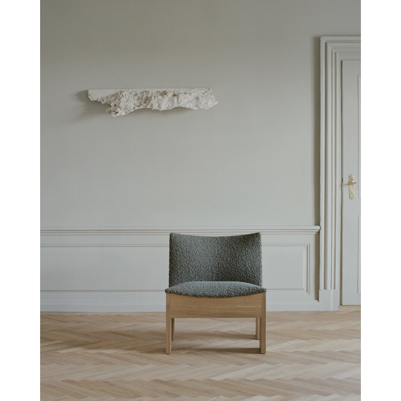 Published by New Works, Tenon is an armchair with an expressive character that is both hard and soft, strong and graceful. The robust wood contrasts with the softness of the seat and back upholstered in high-quality fabric. The solid oak structure is assembled using the mortise and tenon method. The generously padded seat invites you to relax. Despite its small dimensions, Tenon is a comfortable armchair that will find its place in a variety of living room styles.
