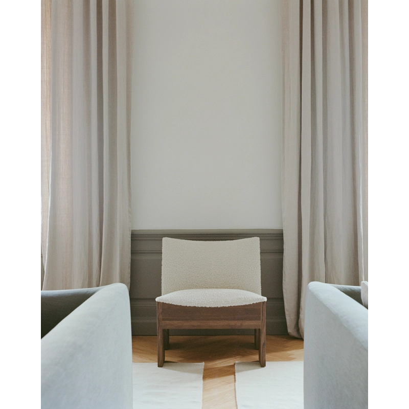 Published by New Works, Tenon is an armchair with an expressive character that is both hard and soft, strong and graceful. The robust wood contrasts with the softness of the seat and back upholstered in high-quality fabric. The solid oak structure is assembled using the mortise and tenon method. The generously padded seat invites you to relax. Despite its small dimensions, Tenon is a comfortable armchair that will find its place in a variety of living room styles.