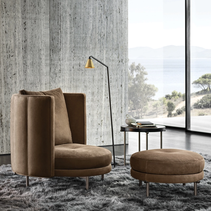 Minotti includes sofas, armchairs, small armchairs, an ottoman, coffee tables, and a slim oval console that can be freely placed in living spaces. This structured range of products allows for the creation of flexible configurations, where individual elements can be matched to create a strong visual unity.