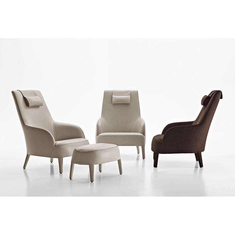 Designed by Antonion Citterio for Maxalto, Febo is a family of armchairs and sofas bearing the memory of a very traditional typology marked and by a wide enveloping backrest. The Febo armchairs are distinguished by their elegant lines. Each model is distinguished by the backrest, which can be high or low and of a more or less enveloping shape. They are available in a single-layered model in fabric or leather, with visible blanket stitching.