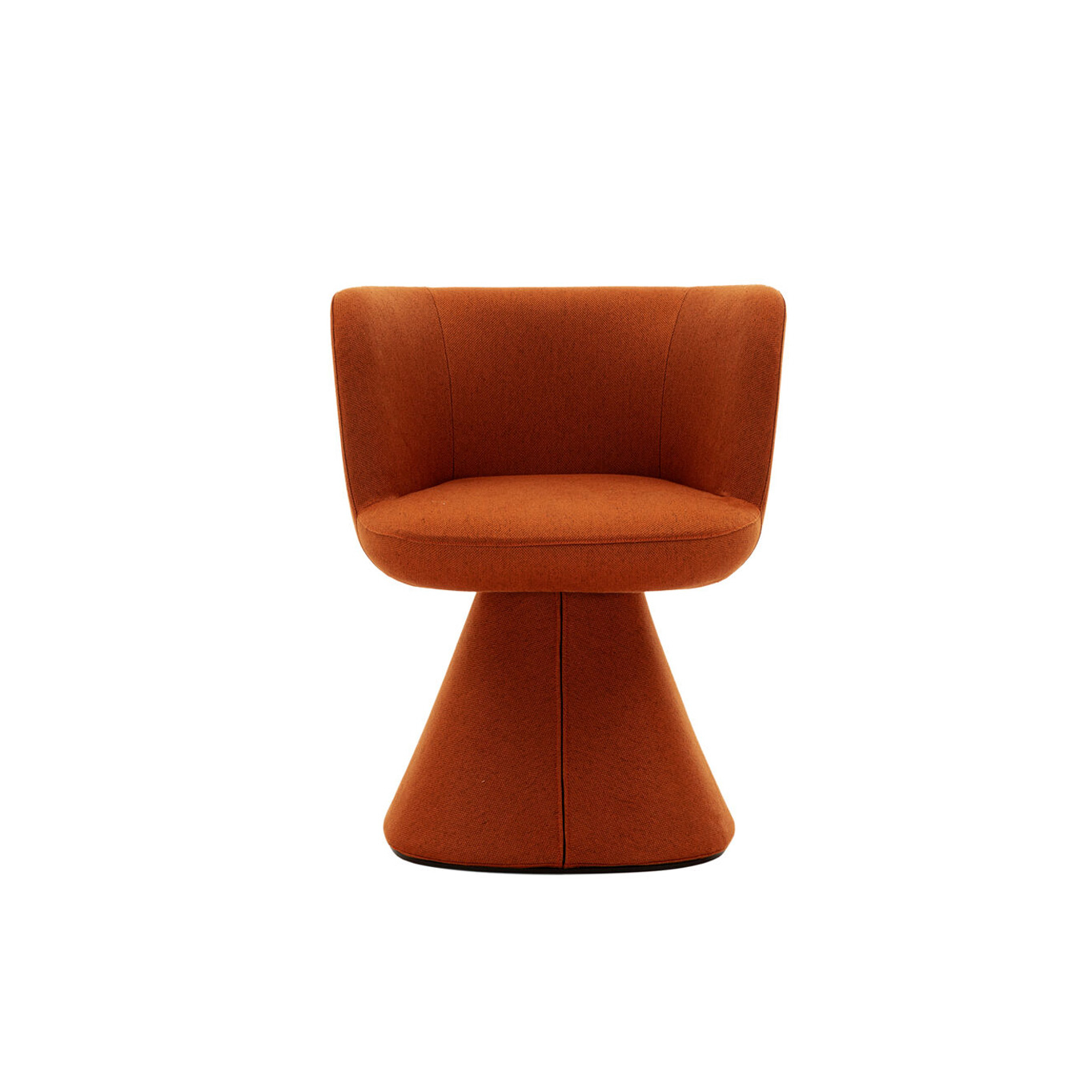 The Flair O' is a swivel dining chair with an elegant and modern design, created by Monica Armani in 2021 for the brand B&B Italia. A true domestic throne, this chair harmonizes perfectly with the Allure O' table, initiating a subtle dialogue between the two pieces starting from their base. Both pieces rest on a truncated pyramid with rounded edges, blending charm and elegance seamlessly. The base gently widens towards the back as it approaches the floor, a subtle yet crucial detail that enhances stability without compromising the harmony of the design. The padded seat ensures optimal comfort, while the pronounced tilt of the backrest and its enveloping shape allow for relaxation while maintaining an elegant posture, ideal for interacting with guests around the table. Additionally, the chair is equipped with a swiveling mechanism with automatic repositioning, adding a practical dimension to its refined aesthetics. The fabric upholstery dresses the Flair O' like a custom-tailored suit, enveloping the chair from the base to the seat for a flawless finish.