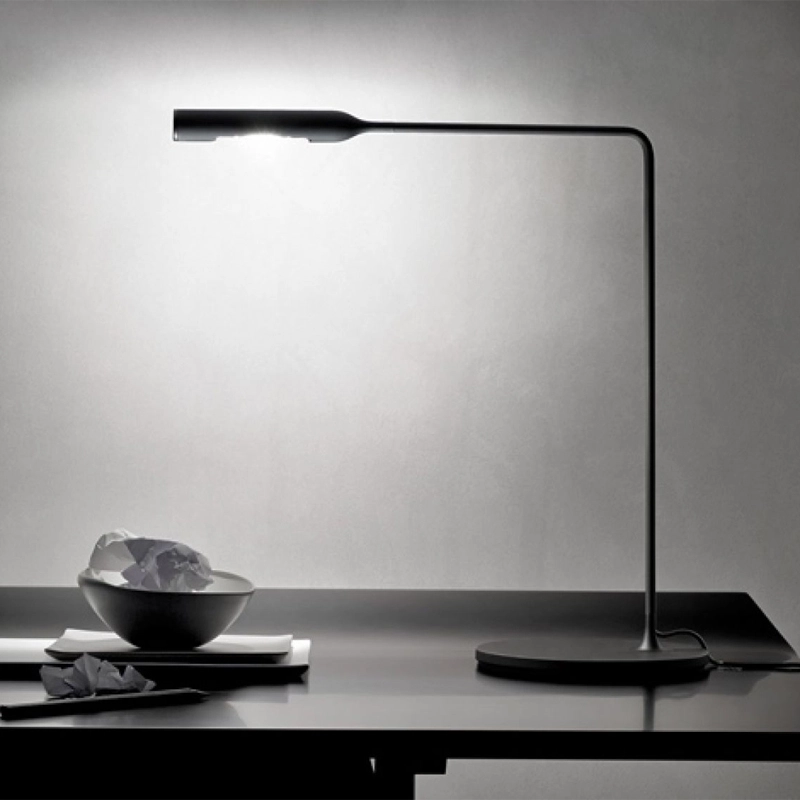 The Flo lighting collection was created by the Foster + Partners team for Lumina. This collection is characterised by a minimalist design using state-of-the-art technology. The table lamp version for a bedside table, the desk lamp and the floor lamp all diffuse a soft and subtle light that is obtained not only by the lamp's refined shape, but also by the absence of external moving parts such as coils and springs. The Flo collection is made of aluminium and steel with a matte black or white finish; the switch button is located on the diffuser with three positions: on, half on and off. The LED source is of very high quality and guaranteed by Lumina.