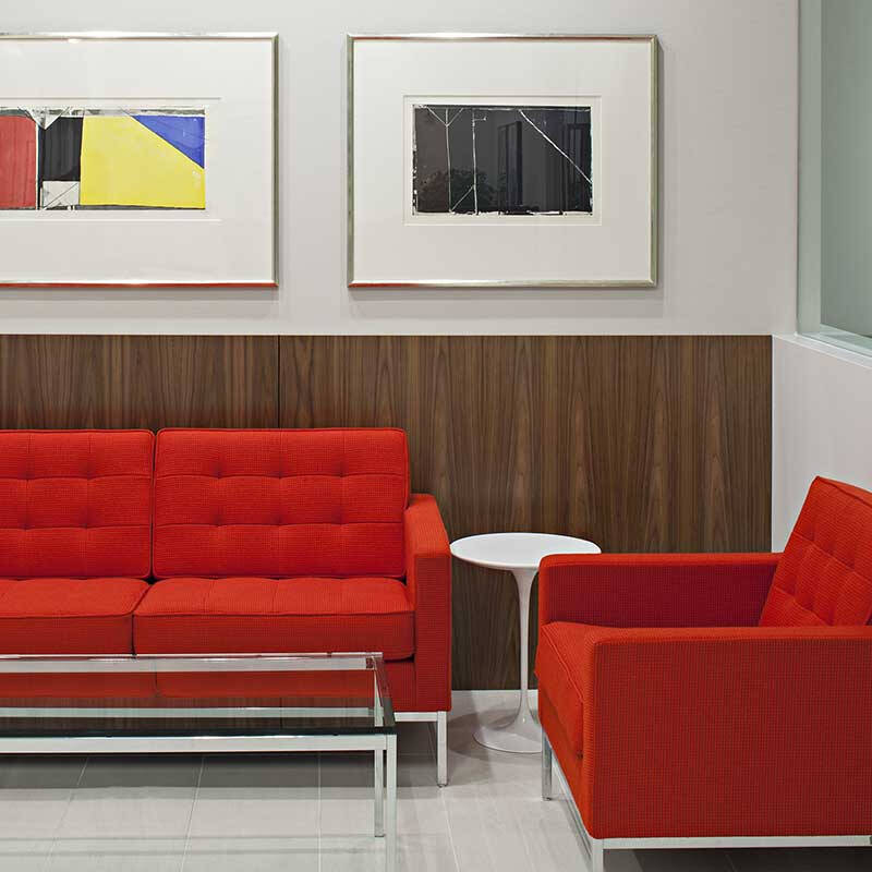 Florence Knoll sofa is available in a 2 or 3-seater version and comes in a wide variety of fabrics.