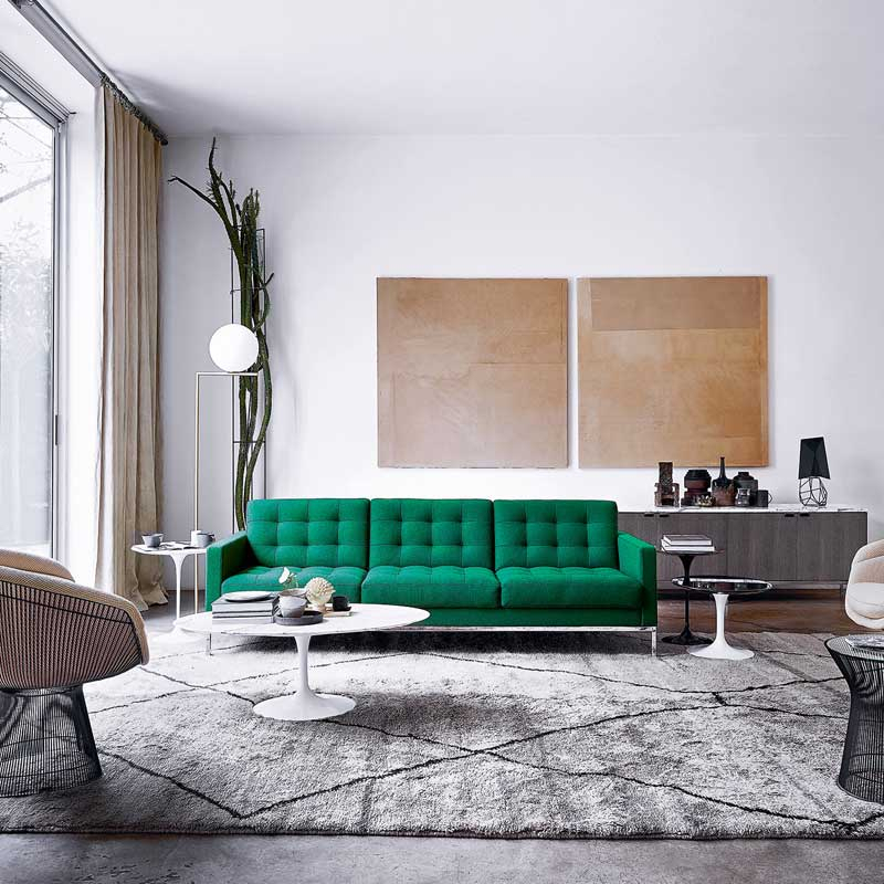 Florence Knoll sofa is a translation of the rhythm and proportions of mid-20th century modern architecture, warmed by colour and texture. This collection perfectly expresses the rational approach to design that