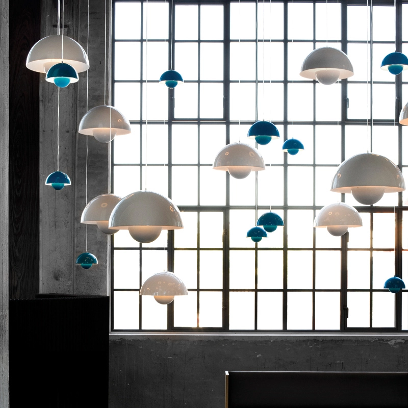 A must-have design icon! This FlowerPot VP1 suspension lamp by &Tradition was designed in 1969 by Danish designer Verner Panton, one of the leading figures of 20th-century Scandinavian design. In 1968, the student riots in Paris, Rome and the United States overthrew the old, overly severe values and brought in the "Flower-Power" generation of peace, love and harmony. In the same year, Stanley Kubrick imagined the future, the year 2001, featuring in his film the Panton chair that had become a design classic and man was about to set foot on the moon. In the world of design, a colourful and fun pendant lamp was blooming in restaurants and exhibitions and was soon seen in homes, too. The FlowerPot VP1 lamp, with its two half-spheres facing each other, has become an iconic object of the 70's and its timeless, quality design edited by &Tradition has made it through the decades without getting a wrinkle! The strength of this FlowerPot VP1 suspensionfrom &Tradition lies in the interlocking interplay of the two metal domes that make it up. The round, elemental and playful shapes of this FlowerPot VP1 suspensionfrom &Tradition, are highlighted by a host of cheerful colours. With its wide choice of colours, the collection FlowerPot invites itself into the kitchen with the pendant model, on a bedside table or in the living room, in its table lamp version.