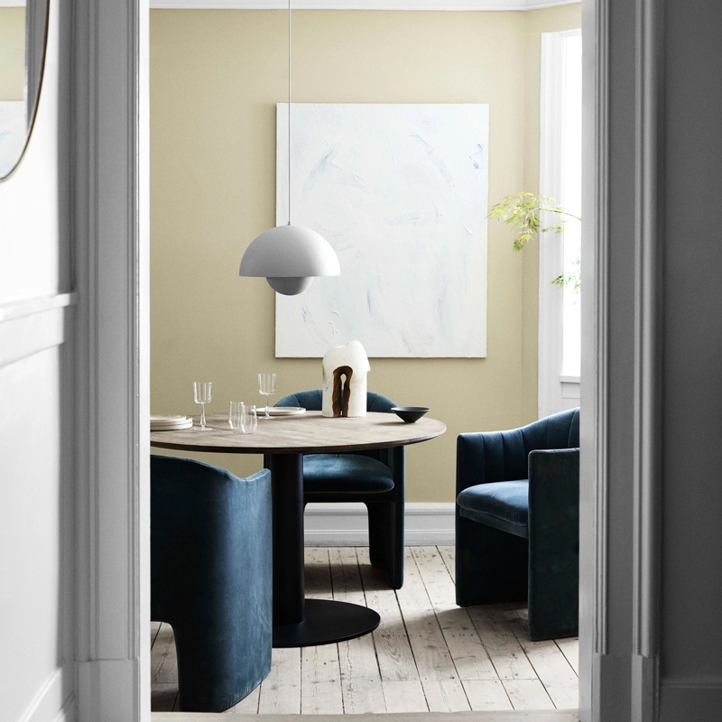 In 1968, the student riots in Paris, Rome and the United States overthrew the old, overly severe values and brought in the "Flower-Power" generation of peace, love and harmony. In the same year, Stanley Kubrick imagined the future, the year 2001, featuring in his film the Panton chair that had become a design classic and man was about to set foot on the moon. In the world of design, a colourful and fun pendant lamp was blooming in restaurants and exhibitions and was soon seen in homes, too. The FlowerPot lamp, with its two hemispheres facing each other, is a timeless and quality design, produced by &Tradition. With a wide range of colours, the FlowerPot collection is a welcome addition to the kitchen with the pendant model, or on a bedside table or in the living room, in its table lamp version.