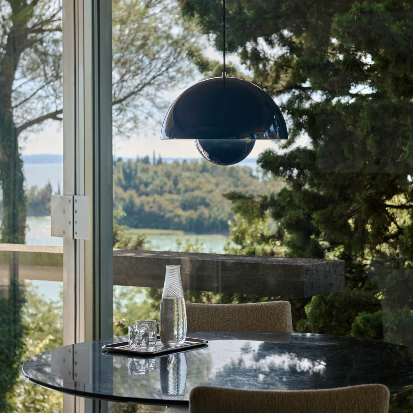 In 1968, the student riots in Paris, Rome and the United States overthrew the old, overly severe values and brought in the "Flower-Power" generation of peace, love and harmony. In the same year, Stanley Kubrick imagined the future, the year 2001, featuring in his film the Panton chair that had become a design classic and man was about to set foot on the moon. In the world of design, a colourful and fun pendant lamp was blooming in restaurants and exhibitions and was soon seen in homes, too. The FlowerPot lamp, with its two hemispheres facing each other, is a timeless and quality design, produced by &Tradition. With a wide range of colours, the FlowerPot collection is a welcome addition to the kitchen with the pendant model, or on a bedside table or in the living room, in its table lamp version.