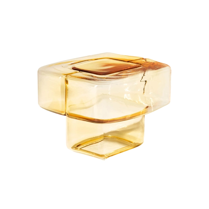 Designed by the designer Linde Freya Tanavian for Cassina, the Fluid Joinery Ambre table stands at the crossroads of art, design and contemporary craftsmanship. This monolithic table in mouth-blown glass explores the properties of matter and color through an organic and fluid form, where transparency and depth intertwine to create an object with a strong visual presence. Entirely handmade in Italy, the Fluid Joinery Ambre pedestal table is made from colored glass volumes in paste, blown in a cast mold according to an intricate artisanal process. Each piece is unique, marked by subtle variations in hue and texture that react to light to offer rich and captivating reflections. The curved and slightly irregular surfaces reveal a sculptural reading of glass, combining visual lightness and assertive presence. Thought to be used alone or in composition with other elements of the collection, this table offers versatility of use in contemporary living spaces. It naturally finds its place as a side table in a living room, a reading corner, a bedroom or any residential or professional space looking for furniture that dialogues with the light and surrounding materials. Fluid Joinery Ambre table by Cassina embodies the subtle alliance between formal innovation, craftsmanship and material expression, transforming a side table into a real functional sculpture, thought to enrich contemporary interiors with warmth, of depth and poetry.