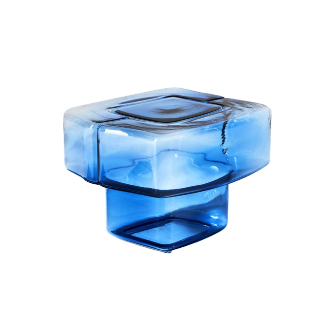 Entirely handmade in Italy, the Fluid Joinery Ambre pedestal table is made from colored glass volumes in paste, blown in a cast mold according to an intricate artisanal process. Each piece is unique, marked by subtle variations in hue and texture that react to light to offer rich and captivating reflections. The curved and slightly irregular surfaces reveal a sculptural reading of glass, combining visual lightness and assertive presence.