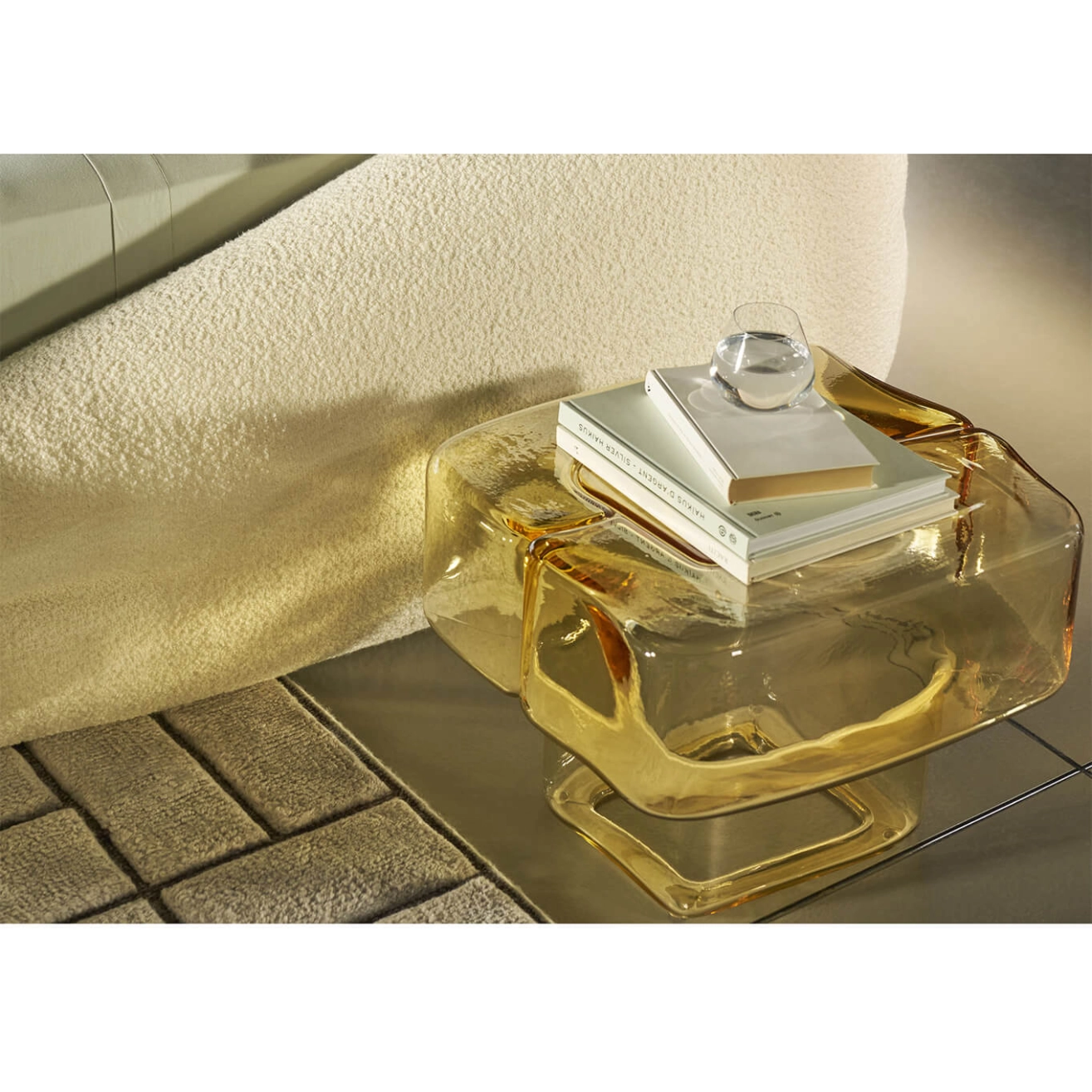 Designed by the designer Linde Freya Tanavian for Cassina, the Fluid Joinery Ambre table stands at the crossroads of art, design and contemporary craftsmanship. This monolithic table in mouth-blown glass explores the properties of matter and color through an organic and fluid form, where transparency and depth intertwine to create an object with a strong visual presence.