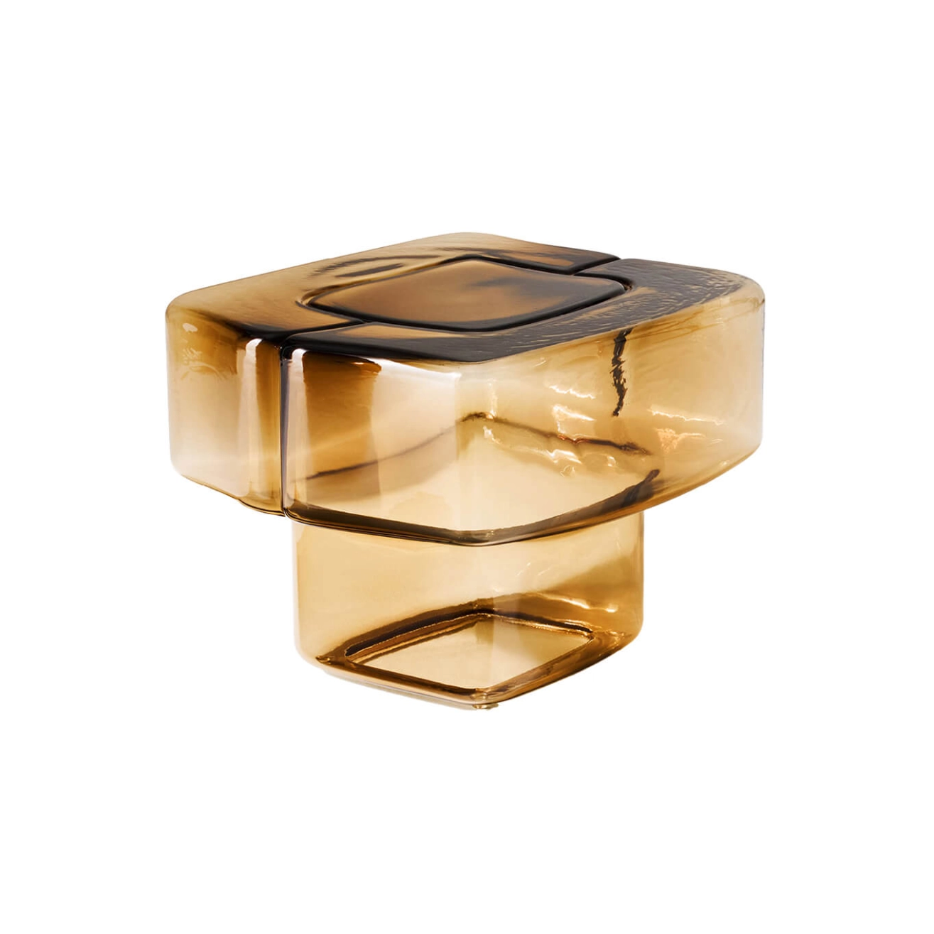 Designed by the designer Linde Freya Tanavian for Cassina, the Fluid Joinery Ambre table stands at the crossroads of art, design and contemporary craftsmanship. This monolithic table in mouth-blown glass explores the properties of matter and color through an organic and fluid form, where transparency and depth intertwine to create an object with a strong visual presence. Entirely handmade in Italy, the Fluid Joinery Ambre pedestal table is made from colored glass volumes in paste, blown in a cast mold according to an intricate artisanal process. Each piece is unique, marked by subtle variations in hue and texture that react to light to offer rich and captivating reflections. The curved and slightly irregular surfaces reveal a sculptural reading of glass, combining visual lightness and assertive presence. Thought to be used alone or in composition with other elements of the collection, this table offers versatility of use in contemporary living spaces. It naturally finds its place as a side table in a living room, a reading corner, a bedroom or any residential or professional space looking for furniture that dialogues with the light and surrounding materials. Fluid Joinery Ambre table by Cassina embodies the subtle alliance between formal innovation, craftsmanship and material expression, transforming a side table into a real functional sculpture, thought to enrich contemporary interiors with warmth, of depth and poetry.