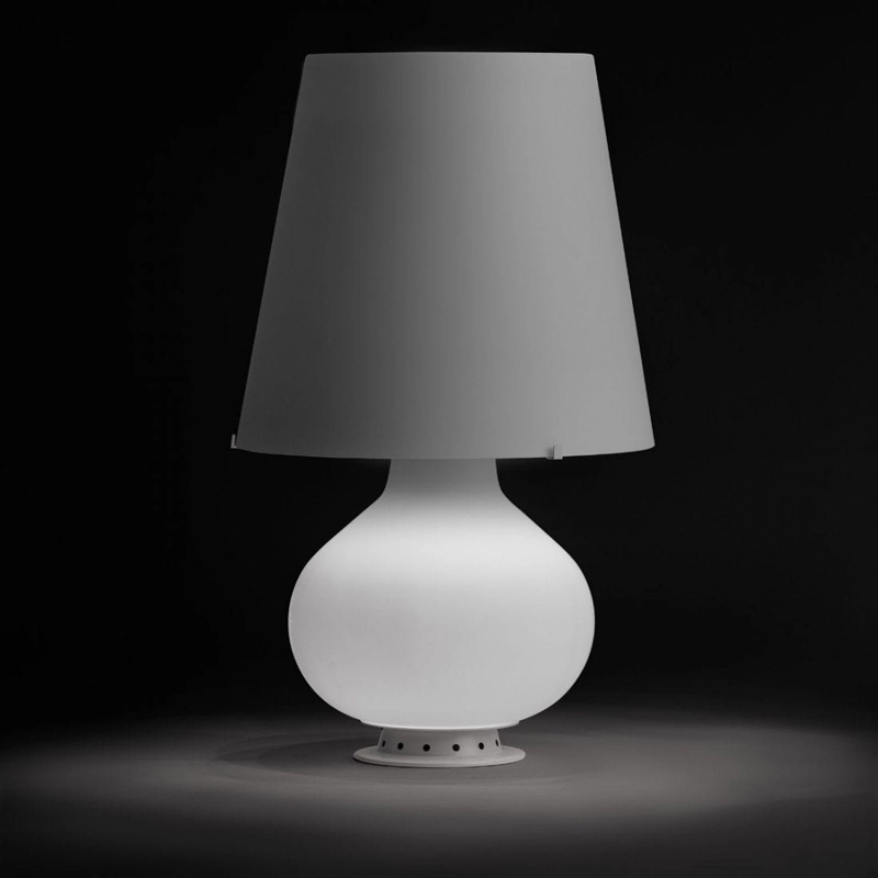 Fontana is its multiple light sources: both the base and the shade contain one or more. The larger version also allows indirect lighting, with an additional source that projects an upwards beam of indirect light. Different light sources can be used to meet different lighting needs: from a soft, relaxing glow to an intense beam of light for reading, passing by suggestive mood lighting.