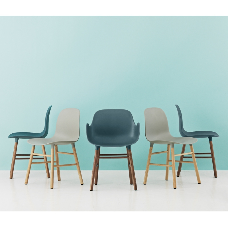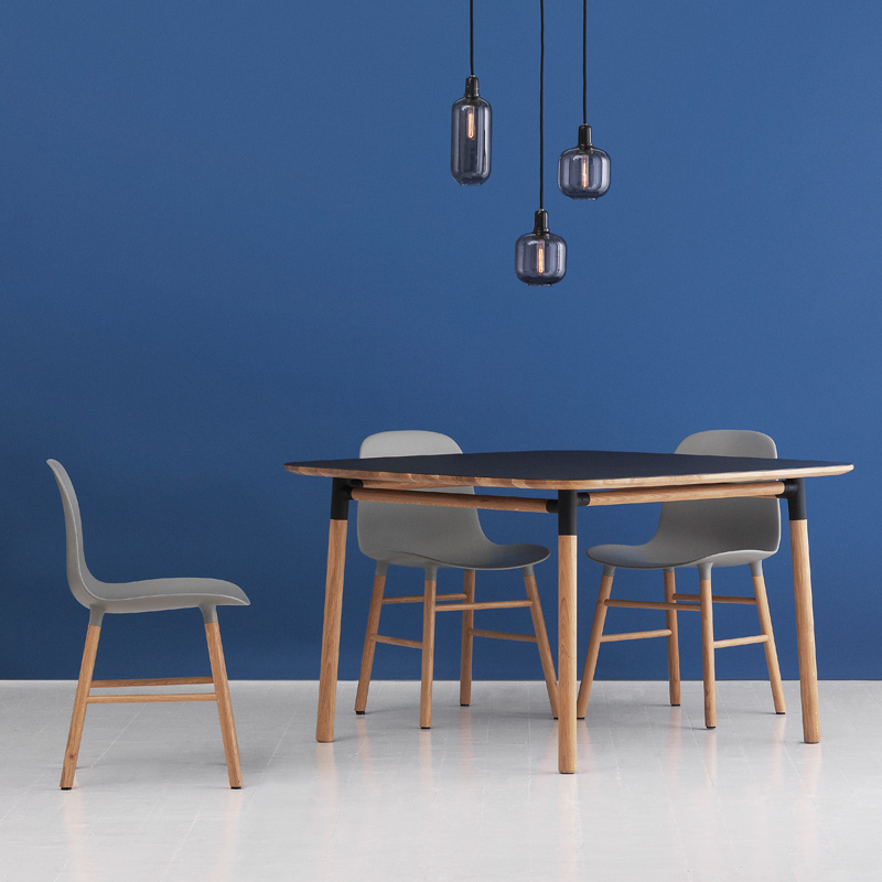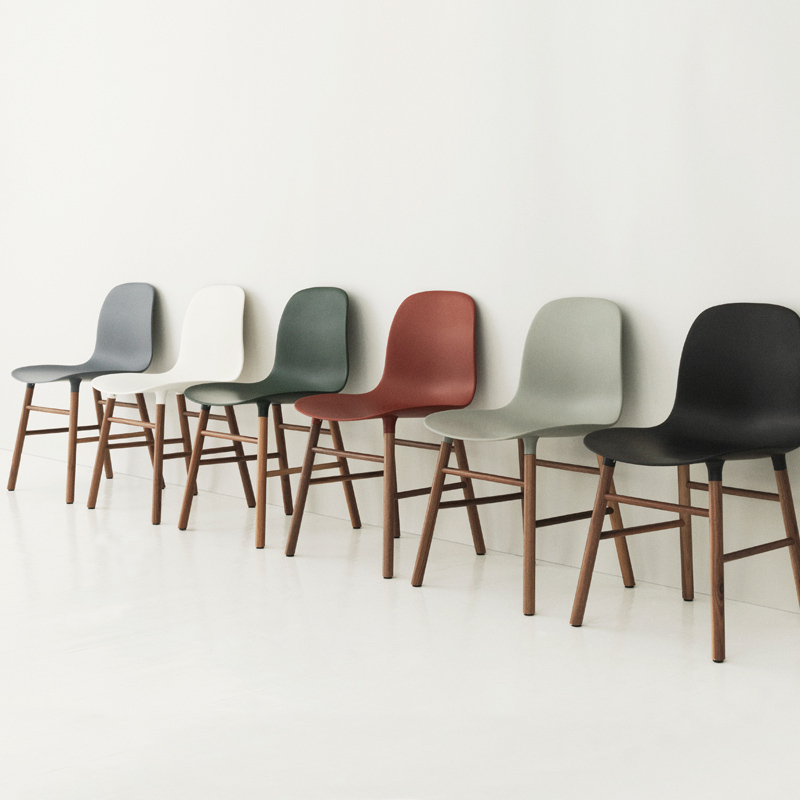 Simon Legald and Normann Copenhagen have once again renewed their collaboration by launching "Form", a collection that reinterprets the chair and the table, combining strong design with innovative industrial production. With the name "Form", the designer refers to his research into the shape of furniture throughout history. In this collection, the table and the chair have certain characteristics in common: the table top and legs and the seat with the chair base are assembled according to the same principle, specially developed for this range. The plastic shell of the chair is combined with wooden legs (oak or walnut) that add a warm touch, or steel legs that give it a more minimalist look. Its high quality materials and curved design give it an enveloping and cocooning look. Thanks to its durable materials, Form is a collection suitable for both dining room and public environments.