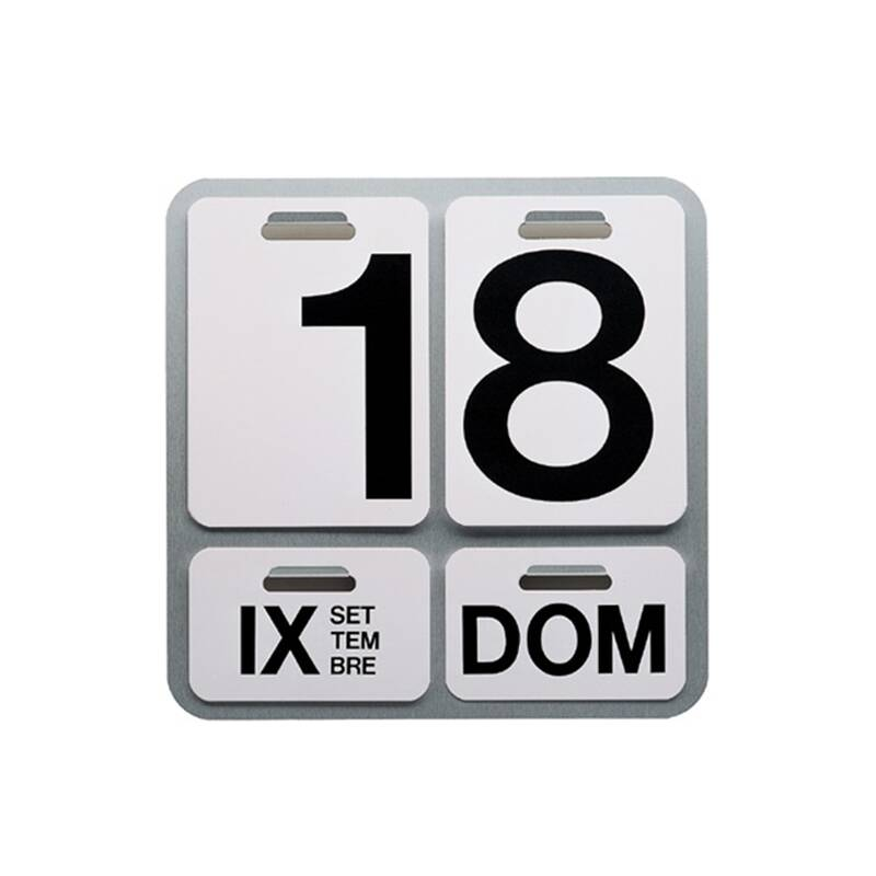 An icon in the world of perpetual calendars, this calendar was created in 1963 by designer Enzo Mari for Danese Milano. Formosa is a wall calendar which features an anodised aluminium base on which lithographed PVC sheets are hung. Formosa has retained all its elegance over the years and, as an extremely functional object, it transcends trends to adapt perfectly to all interiors, from kitchens and offices to bedrooms. Now an emblem of the 1960s, the Formosa calendar features a black stand which comes with either red or black letters according to your preference. Formosa is delivered with French text (shown in Italian on the picture).