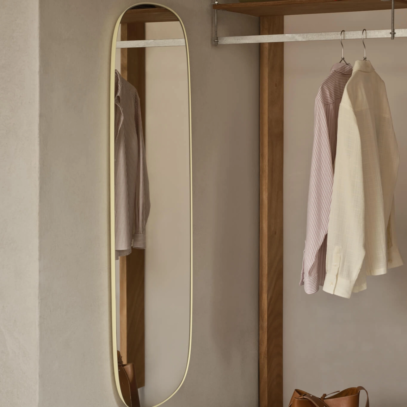 The Framed mirror, designed by the Norwegian duo Anderssen & Voll for Muuto, elegantly reinterprets an everyday object. True to contemporary Scandinavian aesthetics, it combines minimalism, soft lines, and attention to detail to create a mirror that is both functional and decorative. Available in two sizes and three colors, Framed stands out with its slim, slightly raised frame, giving the impression that the mirror is delicately set within a casing. The pink and taupe versions feature tinted glass, adding an extra aesthetic dimension. This subtle tint softens the light and gently transforms the traditional function of the mirror into a warmer, more atmospheric experience. Designed as a modular series, the collection allows for original wall compositions by combining different sizes and colors. When placed together, the mirrors become true graphic elements that energize an interior, whether in an entryway, living room, or bedroom. The Framed mirror by Muuto, however, is not suitable for use in a bathroom or other humid environments.