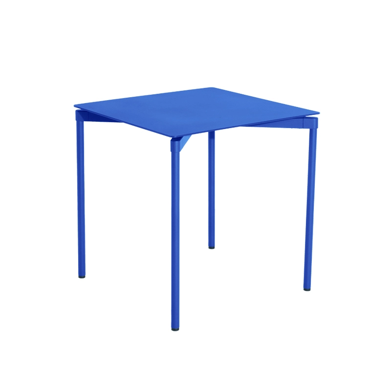 Edited by Petite Friture, Fromme is a collection of metal furniture designed for outdoor use, distinguished by its pure lines and uniqueness. Perfect for 2 people, the square table Fromme has been designed for both indoor and outdoor use. It can be decorated with chairs and stools from the same collection. The Fromme square table is made of aluminum, a durable material. It is 100% recyclable without degradation of its properties. Its recycling requires little energy. Moreover, its recycling process is one of the best organized. The manufacture of the collection required the creation of special molds. The legs of the table are extruded tubes that ensure lightness and solidity to the Frommetable.