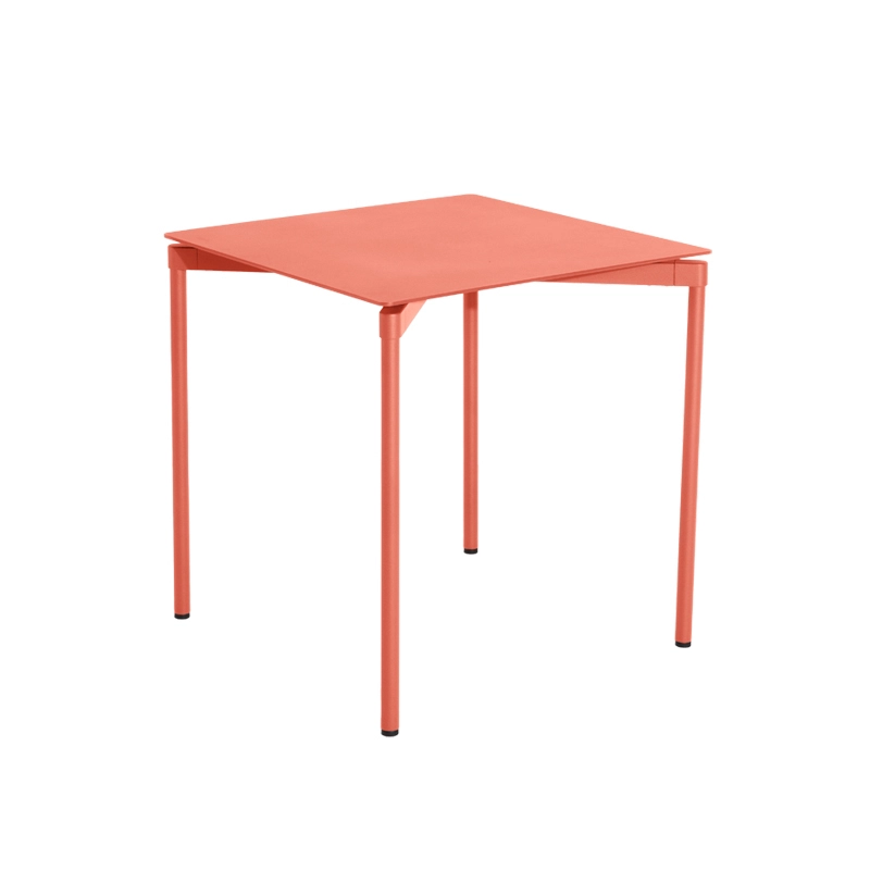 Edited by Petite Friture, Fromme is a collection of metal furniture designed for outdoor use, distinguished by its pure lines and uniqueness. Perfect for 2 people, the square table Fromme has been designed for both indoor and outdoor use. It can be decorated with chairs and stools from the same collection. The Fromme square table is made of aluminum, a durable material. It is 100% recyclable without degradation of its properties. Its recycling requires little energy. Moreover, its recycling process is one of the best organized. The manufacture of the collection required the creation of special molds. The legs of the table are extruded tubes that ensure lightness and solidity to the Frommetable.