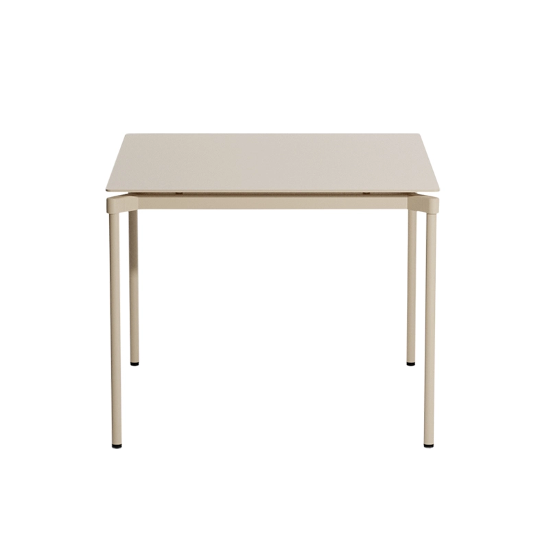 Edited by Petite Friture, Fromme is a collection of metal furniture designed for outdoor use, distinguished by its pure lines and uniqueness. Perfect for 2 people, the square table Fromme has been designed for both indoor and outdoor use. It can be decorated with chairs and stools from the same collection. The Fromme square table is made of aluminum, a durable material. It is 100% recyclable without degradation of its properties. Its recycling requires little energy. Moreover, its recycling process is one of the best organized. The manufacture of the collection required the creation of special molds. The legs of the table are extruded tubes that ensure lightness and solidity to the Frommetable.