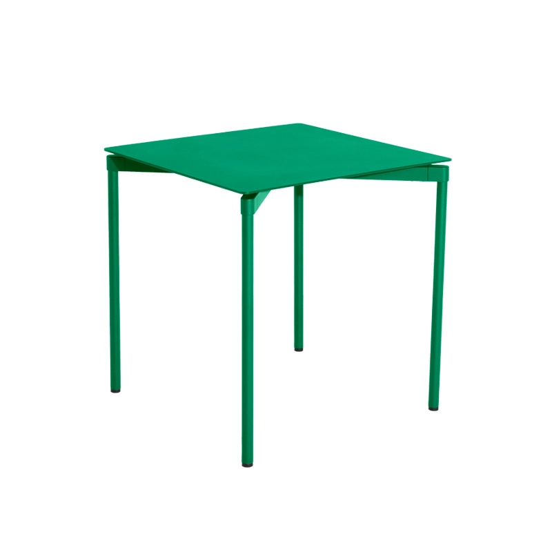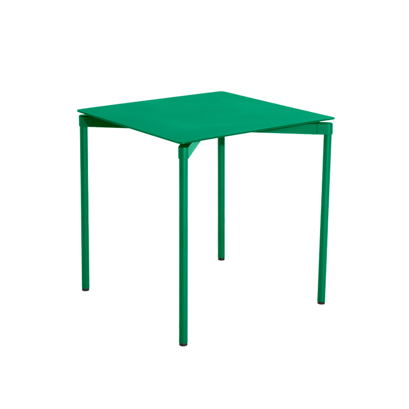 Edited by Petite Friture, Fromme is a collection of metal furniture designed for outdoor use, distinguished by its pure lines and uniqueness. Perfect for 2 people, the square table Fromme has been designed for both indoor and outdoor use. It can be decorated with chairs and stools from the same collection. The Fromme square table is made of aluminum, a durable material. It is 100% recyclable without degradation of its properties. Its recycling requires little energy. Moreover, its recycling process is one of the best organized. The manufacture of the collection required the creation of special molds. The legs of the table are extruded tubes that ensure lightness and solidity to the Frommetable.