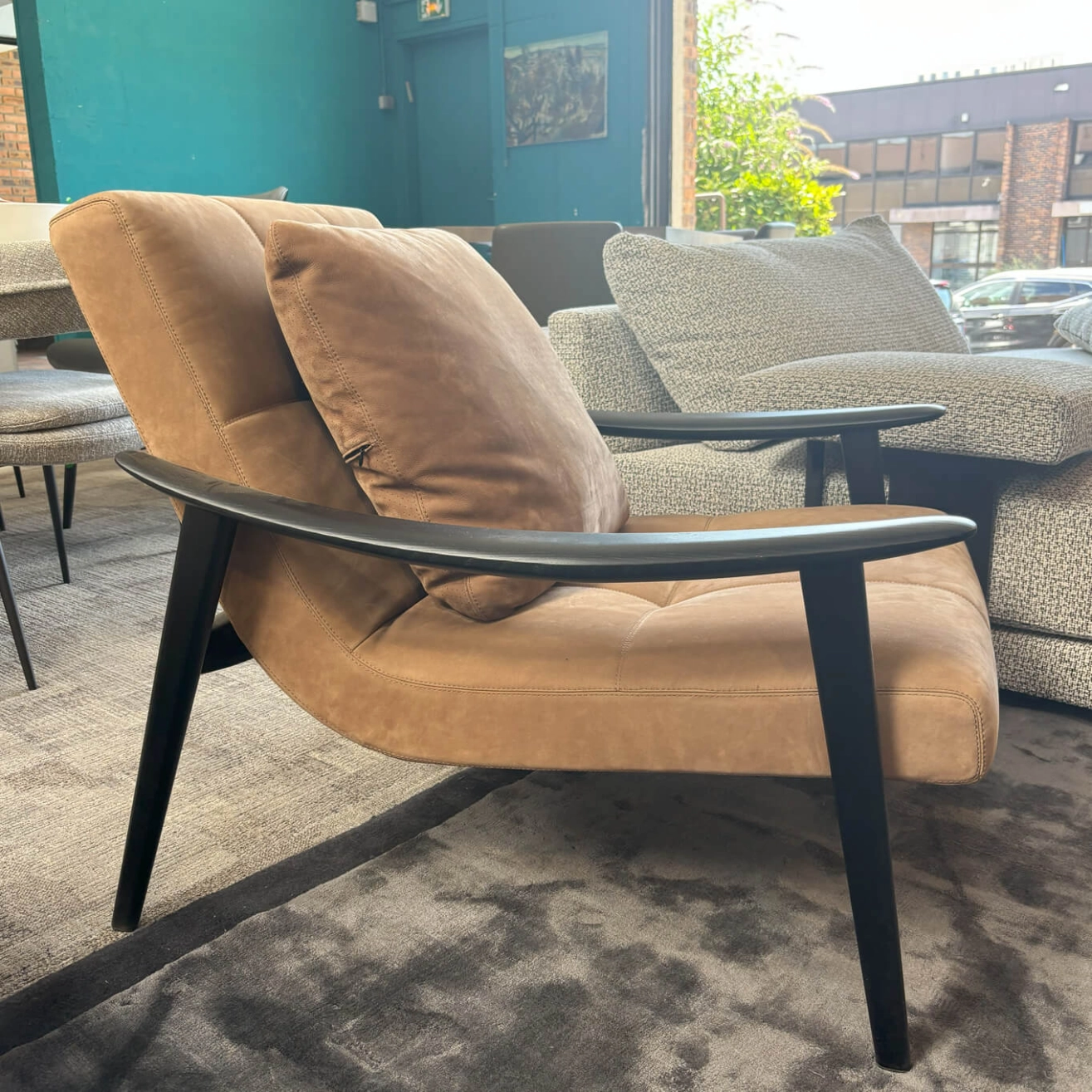 Le fauteuil d'occasion Fynn de Minotti incarne une élégance fluide, à la croisée du savoir-faire artisanal et du design contemporain. Imaginé par le designer GamFratesi, Fynn séduit par sa silhouette sculpturale aux lignes épurées, où chaque courbe semble guidée par la main de l’ébéniste. Son identité repose sur une structure fine en bois massif — noyer ou frêne teinté — subtilement incurvée pour envelopper le dossier et les accoudoirs dans un geste continu et harmonieux. La coque graphique de Fynn accueille un coussin généreux, moelleux et impeccablement ajusté, apportant un confort aussi décontracté que raffiné. Fynn est un fauteuil d'occasion qui joue avec la légèreté sans jamais perdre en présence. Il trouve sa place aussi bien dans un salon élégant que dans un espace lounge plus décontracté, incarnant la philosophie de Minotti : un luxe discret, durable et profondément contemporain.