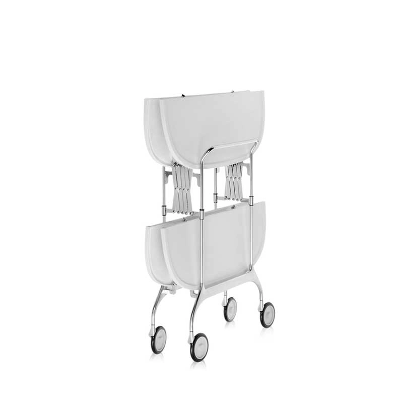 Designed by Antonio Citterio, Gastone is an elegant folding table that features a varnished plastic top and a chrome-plated steel frame. It is available in white or black. Produced by Kartell, its eye-catching castors make it easy to move. It measures a mere 23cm in depth when closed, making it easy to store.