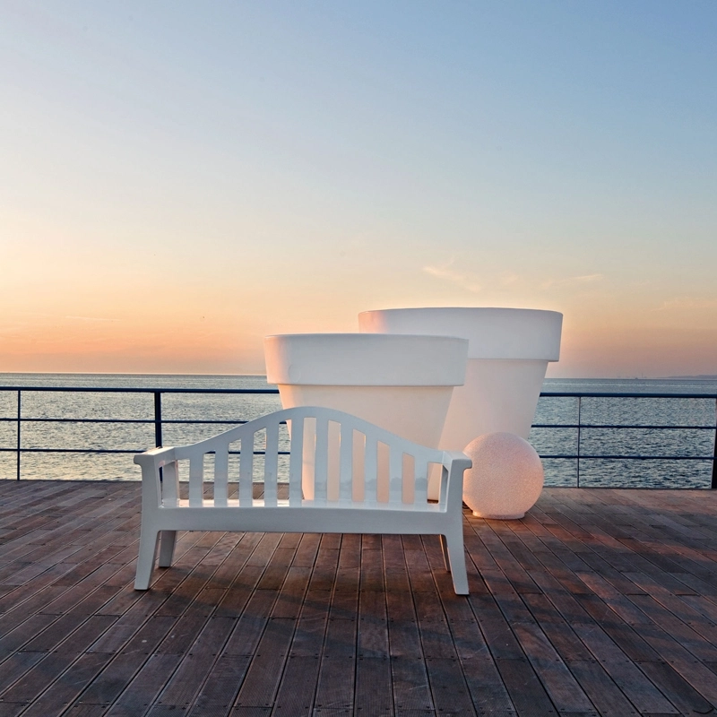 Serralunga combines creativity and technological research and is an international benchmark in the world of outdoor furniture. The Italian brand specialises in transforming plastic and has collaborated with leading designers, such as Paolo Rizzatto and the Giulietta Bench, and Ron Arad who designed the Top Pot with its original and unique silhouette. Serralunga constantly seeks to innovate and create XXL-sized furniture and accessories to enhance and create surprise in outdoor spaces. From lighting fixtures to flower pots, all pieces are designed to create intrigue and attract the eye, whether placed in gardens or on terraces.