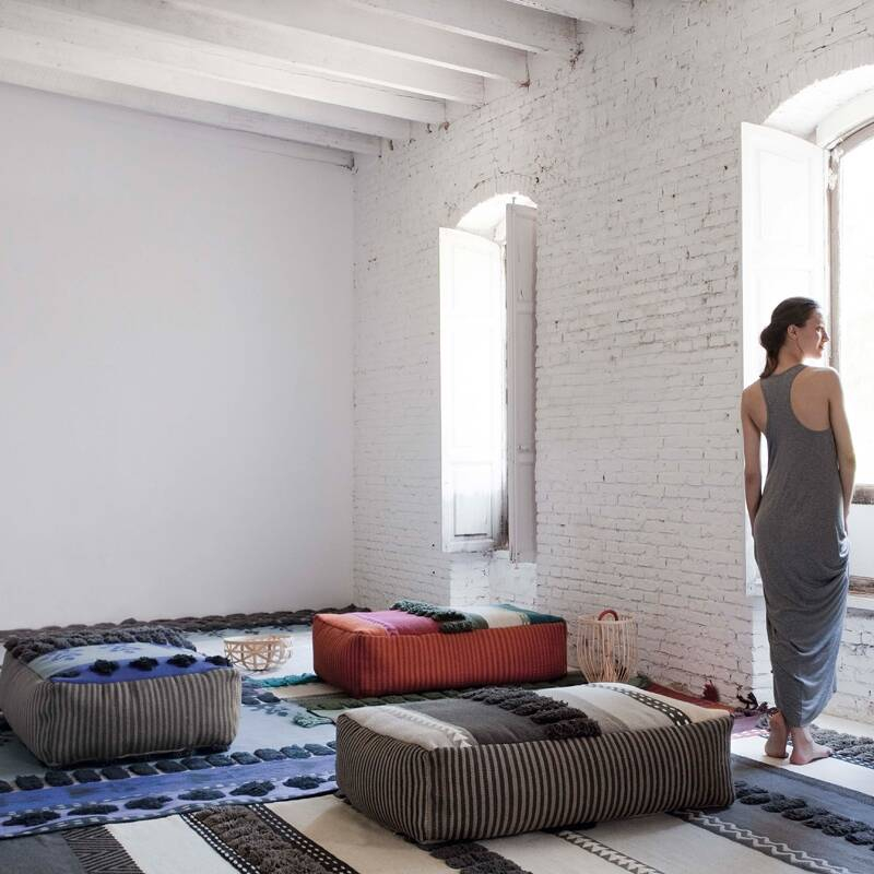 Glaoui is a collection of rugs and pouffes designed by Sandra Figurerola for Gandia Blasco. Traditional Moroccan carpets are combined with innovative textures that create relief and evoke the Atlas mountain ranges. This collection makes it possible to create a separate space that can be adapted to suit your needs.