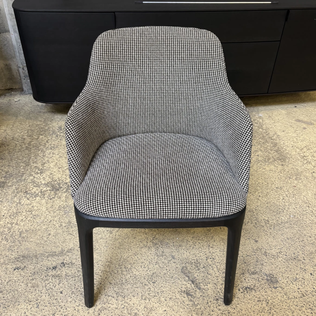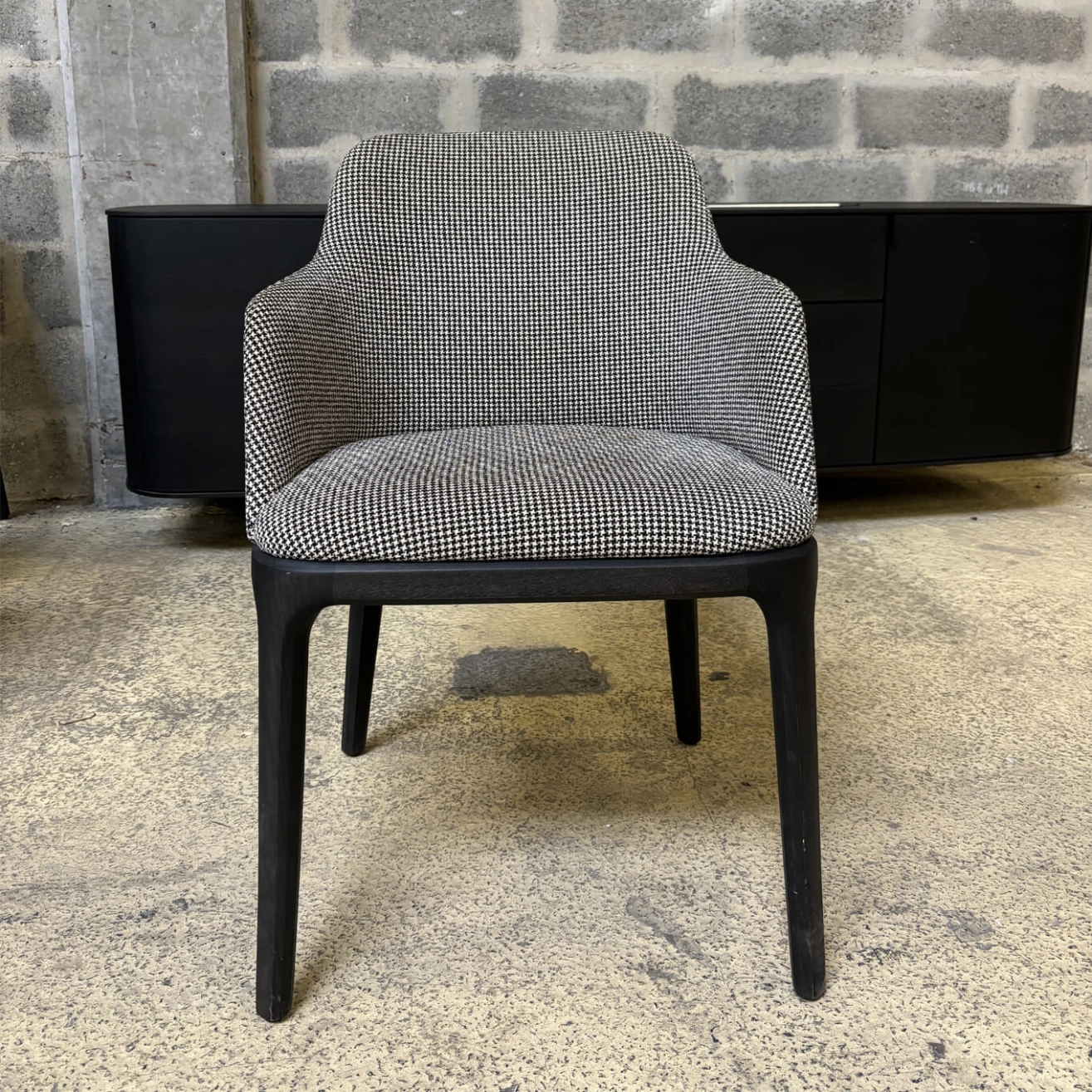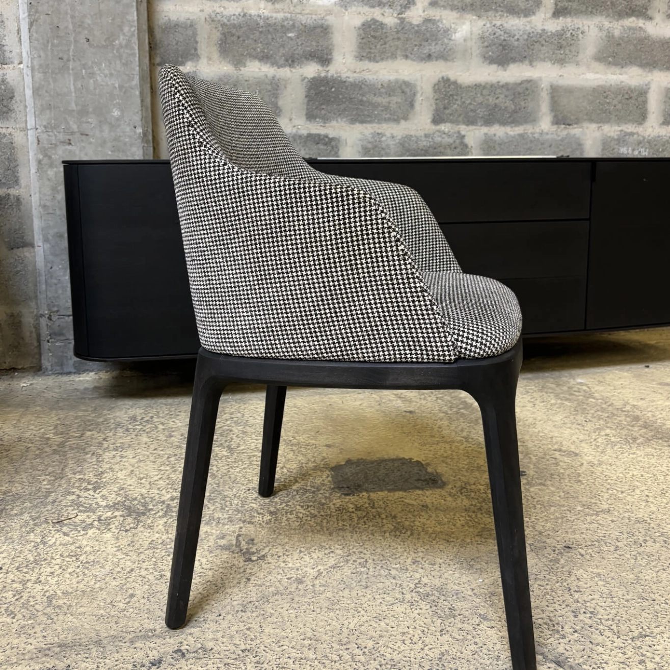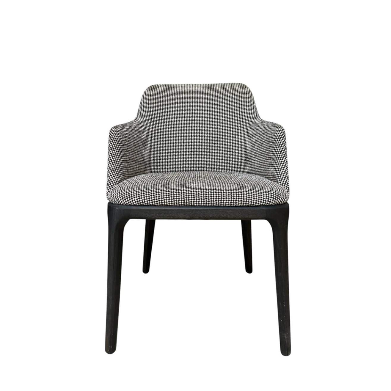 The Grace armchair, designed by designer Emmanuel Gallina for Poliform, embodies the discreet elegance and refinement of contemporary design. With its clean lines and subtle balance between structure and comfort, it stands out as both a functional and sophisticated seating option. Its enveloping silhouette, characterized by a curved backrest and integrated armrests, provides ideal ergonomic support for extended use, whether around a dining table or in a professional setting. The solid wood frame, available in various types and finishes (Spessart oak, black oak, ash walnut, etc.), supports a generously padded seat upholstered in high-quality fabric or leather. Every detail reflects meticulous craftsmanship: discreet stitching, precise joints, and impeccable finishes. Compact yet comfortable, the Grace chair fits seamlessly into a wide range of interiors, from classic to contemporary. It embodies a certain idea of understated luxury, where comfort meets simplicity of form to create a timeless and durable piece.