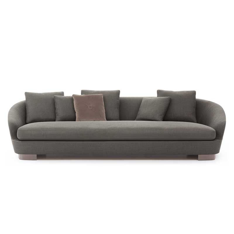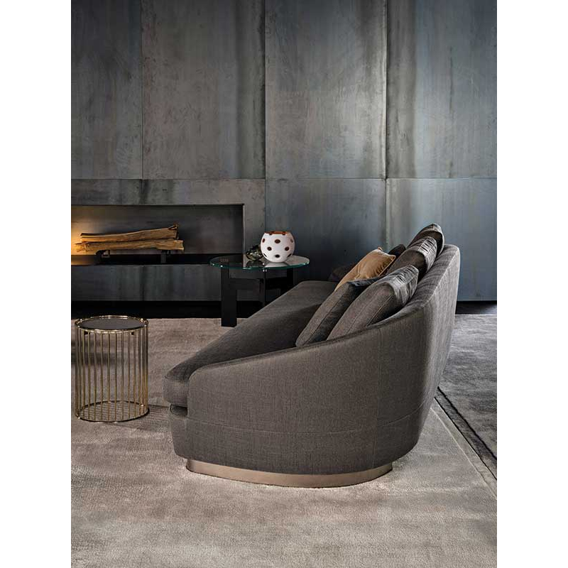 Designed by Rodolfo Dordoni for Minotti, the Jacques collection includes sofas, armchairs and footstools in various sizes, which are the fruit of a common creative root, translating a retro taste into a resolutely contemporary style. A sophisticated aesthetic language that is expressed in soft shapes, reduced proportions and visually striking details, such as the metal base in Light Bronze finish. Refined stitching highlights the curvilinear silhouette of the Jacques sofa, whose rounded shapes create a striking contrast with the rigorous, geometric volumes that characterise the Lawrence sofa. The sophisticated elegance and compact proportions that characterise all the chairs in the Jacques collection allow these elements to blend gracefully into any context, whether residential or public.