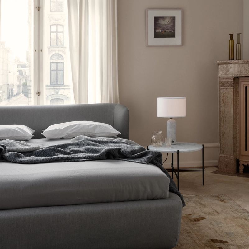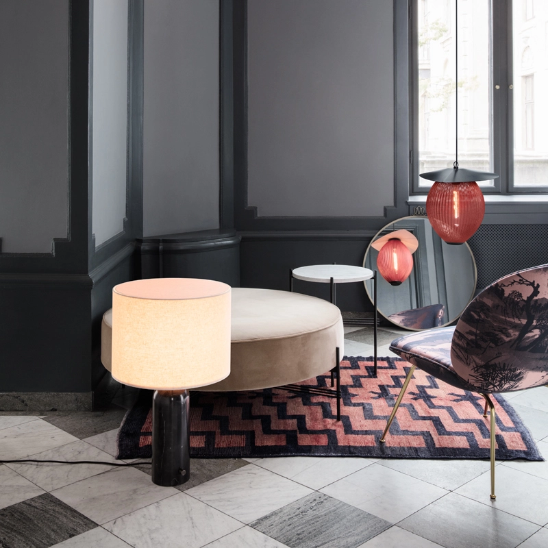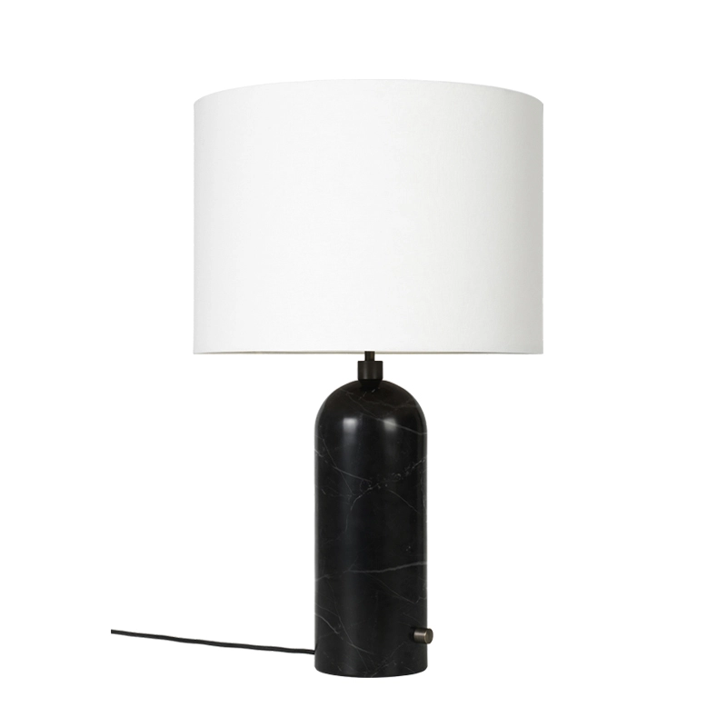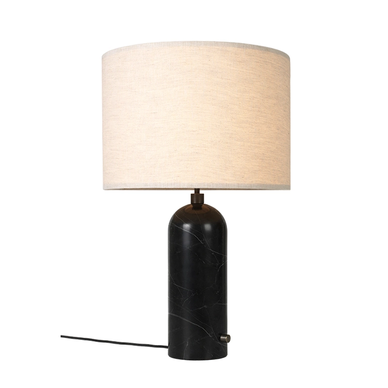 Gravity lamps take their name from the balance between the weight of the cylindrical base and the airy shade, which merge beautifully into a sculptural whole. Combining discreet elegance with obvious functionality, the