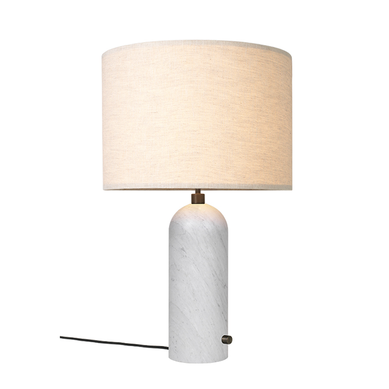 Gravity lamps take their name from the balance between the weight of the cylindrical base and the airy shade, which merge beautifully into a sculptural whole. Combining discreet elegance with obvious functionality, the
