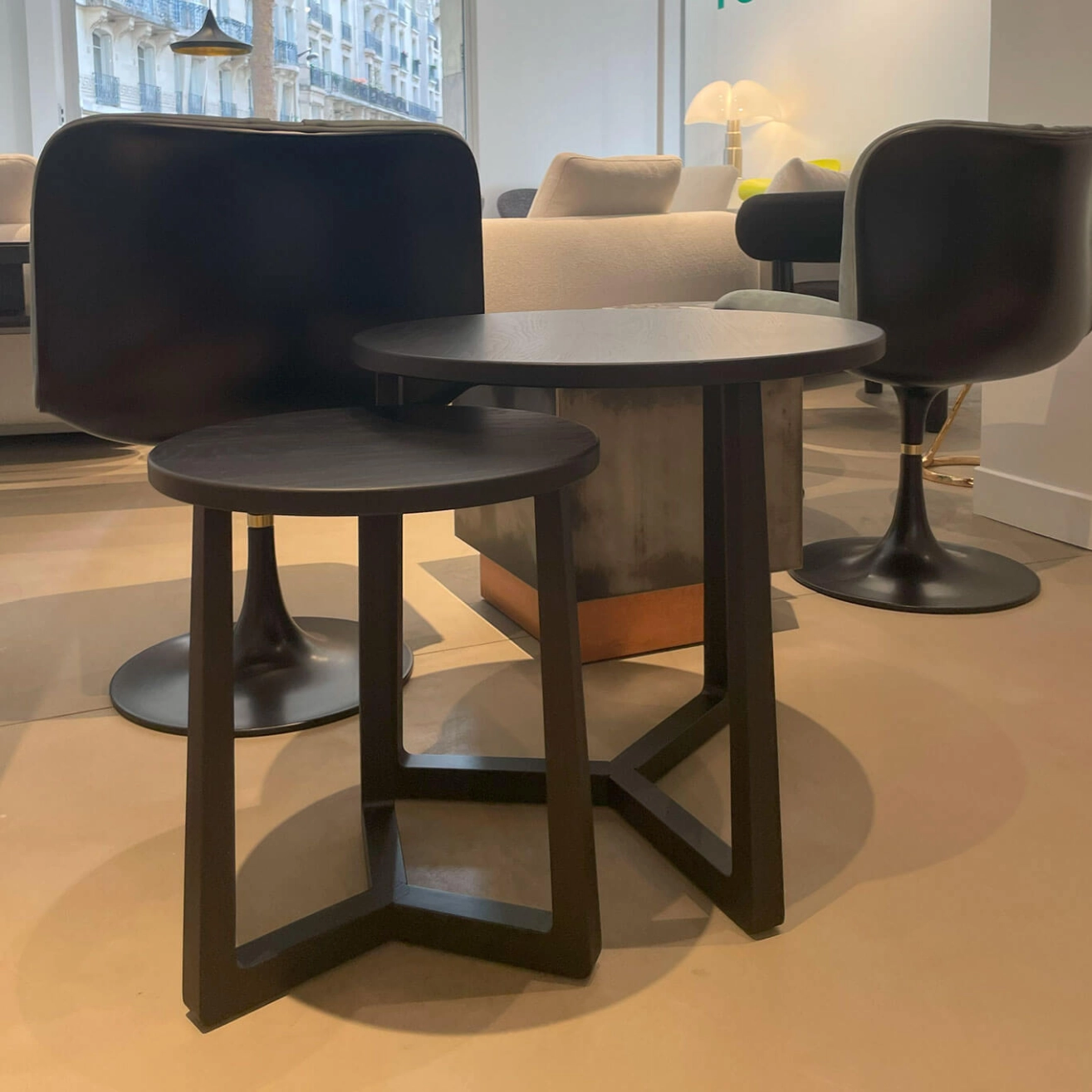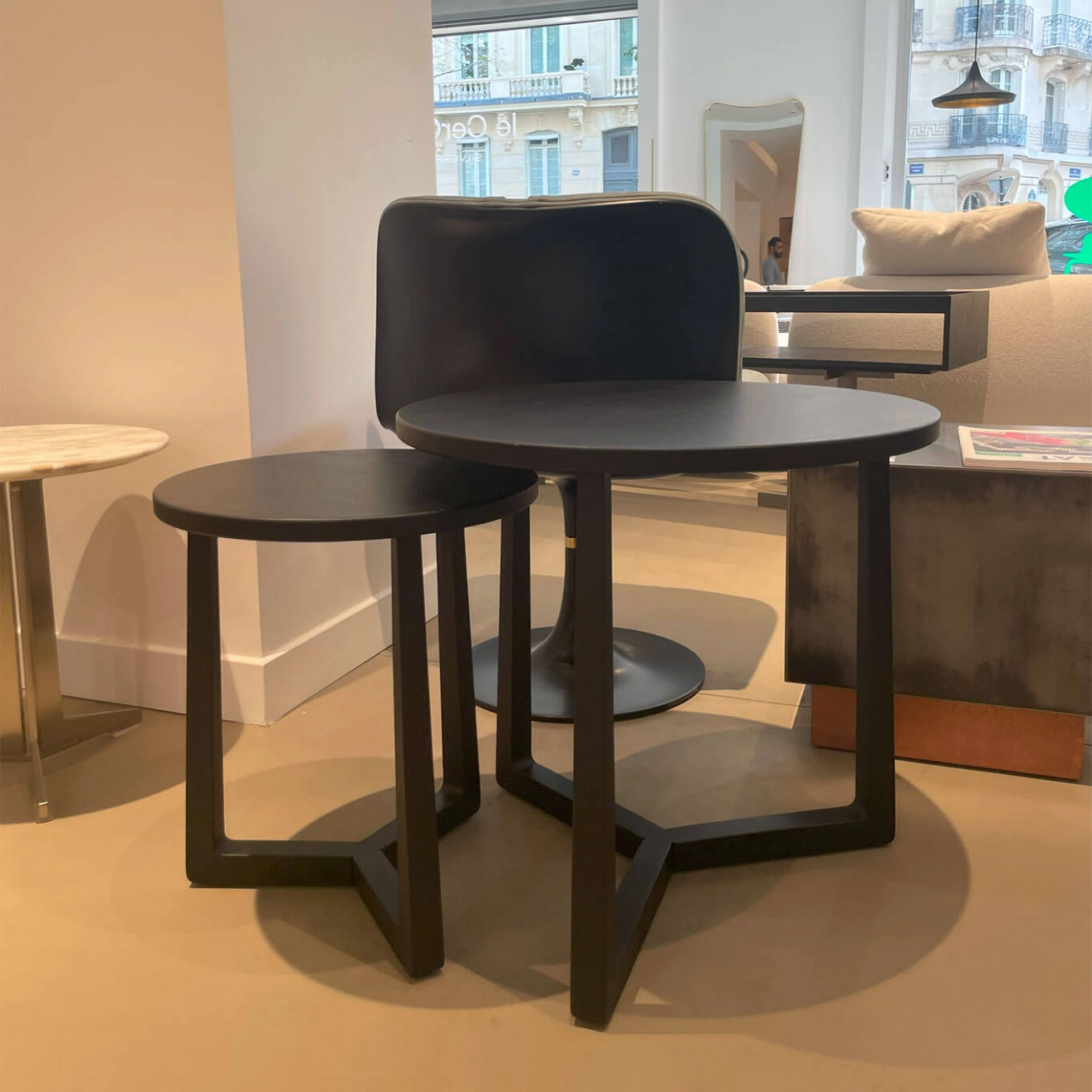 The Gueridon Jiff a side table with a minimalist and refined style, imagined by the Design Center of the house Flexform. This elegant piece combines craftsmanship and timeless aesthetics, faithful to the brand’s DNA. The model Jiff stands out for the purity of its lines and the quality of its materials. Its top and structure are made of solid ash stained ebony, giving the whole a warm and sophisticated presence. Its diameter of 40 cm and its height of 46 cm make it a versatile piece, ideal at the end of a sofa, bedside table or small side table. Designed to be subtly integrated into any interior, the Guéridon Table Jiff embodies the philosophy of Flexform : objects that are both functional and emotional, designed to last.