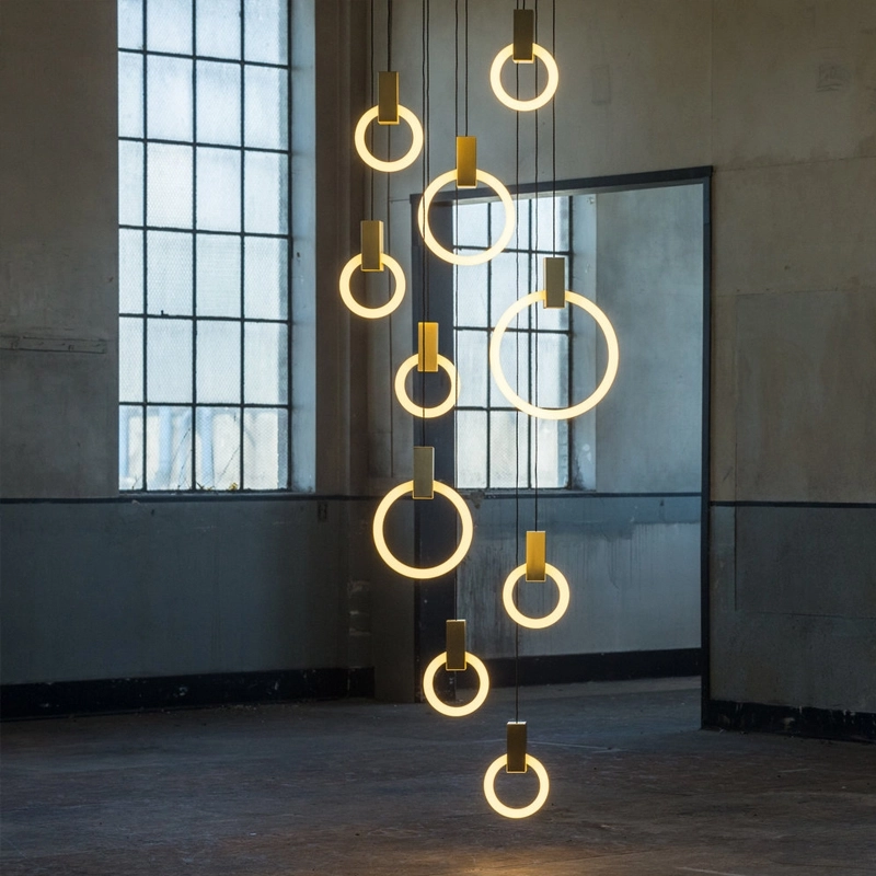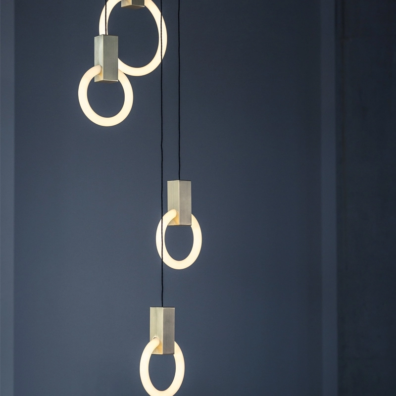 Designed by Matthew McCormick, Halo was originally conceived as a graphic interpretation of effervescence. This collection of bold lamps is inspired by the soft, warm glow of their light. Available in three dimensions, this modular system allows the lights to be hung in a multitude of different configurations, like a range of elegant suspended works of art. Manufactured and finished by hand, they are available in brass, copper, nickel and 24-carat gold. Discover the Halo suspended lamp as well as the entire Matthew McCormick lighting collection. Contact us for more information or visit one of our showrooms SILVERA.