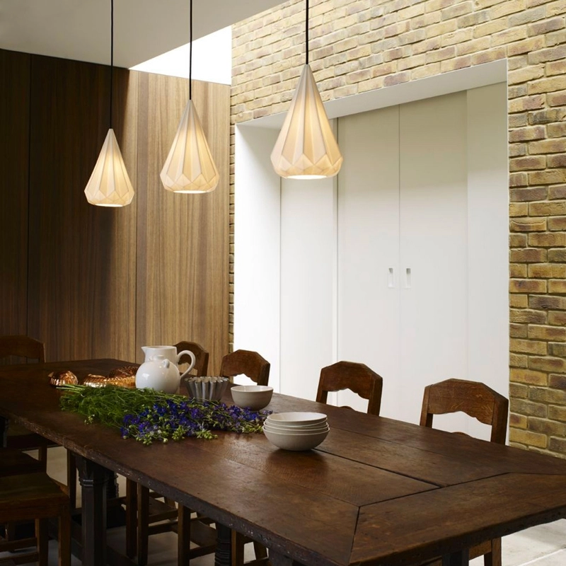 Published by Original BTC, Hatton is a collection of lights with a sculptural design. Available in various sizes, the porcelain lampshades have sophisticated, intricately worked shapes. The multiple facets are reminiscent of a gemstone or origami. Hatton lamps play with light and bring a warm atmosphere into your home, from the bedroom to the living room.