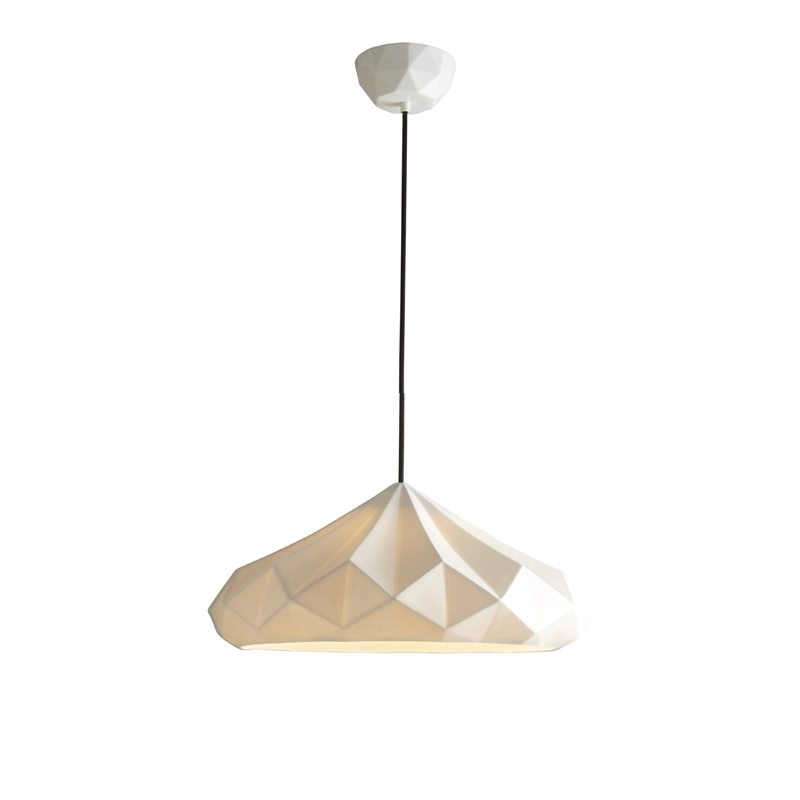 Published by Original BTC, Hatton is a collection of lights with a sculptural design. Available in various sizes, the porcelain lampshades have sophisticated, intricately worked shapes. The multiple facets are reminiscent of a gemstone or origami. Hatton lamps play with light and bring a warm atmosphere into your home, from the bedroom to the living room.