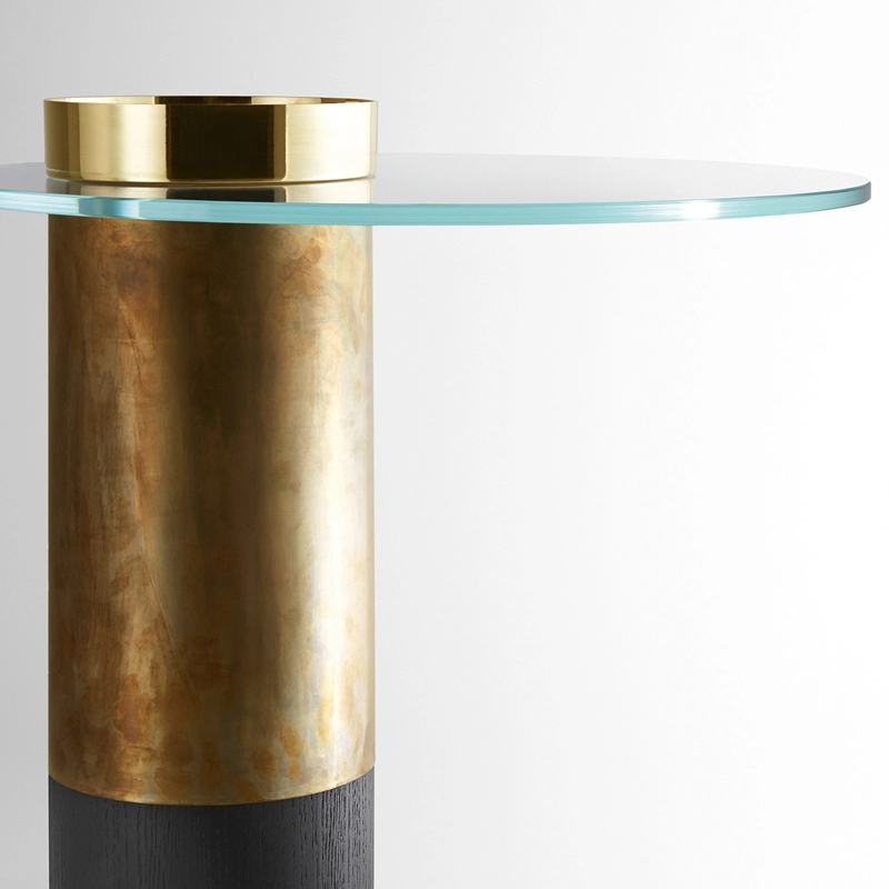 Designed by Massimo Castagna for Gallotti & Radice, Haumea is a collection of coffee and occasional tables that plays elegantly on the marriage of materials. Each Haumea table features a 10mm thick clear extra-clear tempered glass top. With a base divided into three parts, mixing materials and finishes: bright brass, burnished brass and copper-plated brass or black chromed metal, black open-pore or rust lacquered wood. Each table is available in several combinations that skilfully combine glossy and matt, wood and metal. With the different models available for the Haumea collection, it's possible to create original compositions, mixing sizes and finishes.