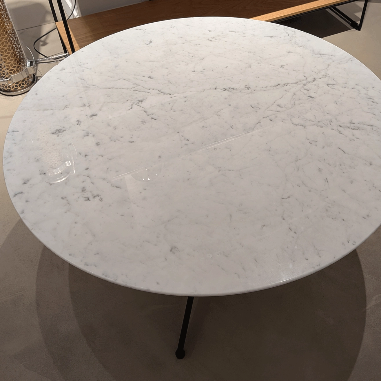 The Hexa Coffee Table in Carrara marble, designed by the Italian designer Enzo Berti for Saba Italia, draws its inspiration from the concept of memory, reimagining simple and iconic shapes with echoes from the past. At the heart of its design lies the upright hexagonal structure, a reference to architectural construction elements, here transformed into a refined joint where the legs connect perpendicularly. This stylistic detail recalls 1950s furniture design while offering a contemporary and architectural character. The metallic base is made of drawn steel wire with a painted finish, elegantly contrasting with the Carrara marble top, a timeless symbol of Italian elegance and craftsmanship. The piece embodies the perfect balance between Italian artisanship, geometric precision, and timeless design. Its sculptural presence brings both lightness and sophistication, making the Hexa Coffee Table a striking centerpiece in any modern interior. This occasion offers a unique opportunity to acquire a signature creation by Enzo Berti for Saba Italia, blending tradition, innovation, and elegance in perfect harmony.