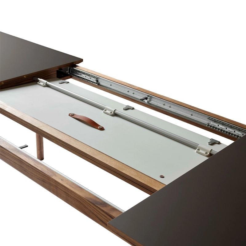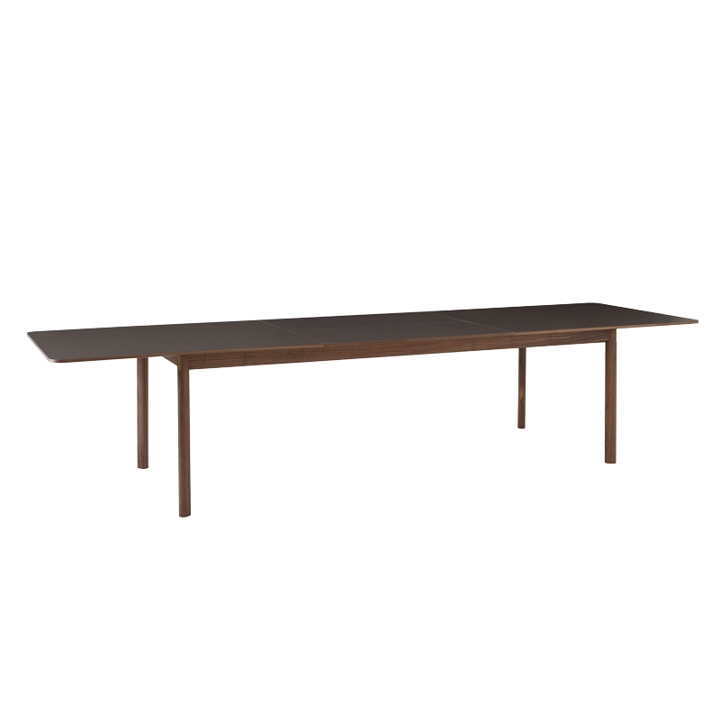 Edited by And Tradition, Patch is an extendable table that combines minimalist shapes and user-friendly design. Determined to create a table that suits the needs of modern families, designer Hee Welling made several prototypes before being satisfied with the design. The result is Patch, an extendable dining table, which uses a butterfly extension technique to allow more people to sit. The wooden base is topped with a smooth laminate board. The table's softly shaped Patch And Tradition legs and rounded top corners add subtle design detail, as do the metal pieces on each leg that hold them securely together. As attractive as it is functional, the Patch table is available in two sizes: 180 x 90 cm or 240 x 100 cm, both extendable by 100 cm.